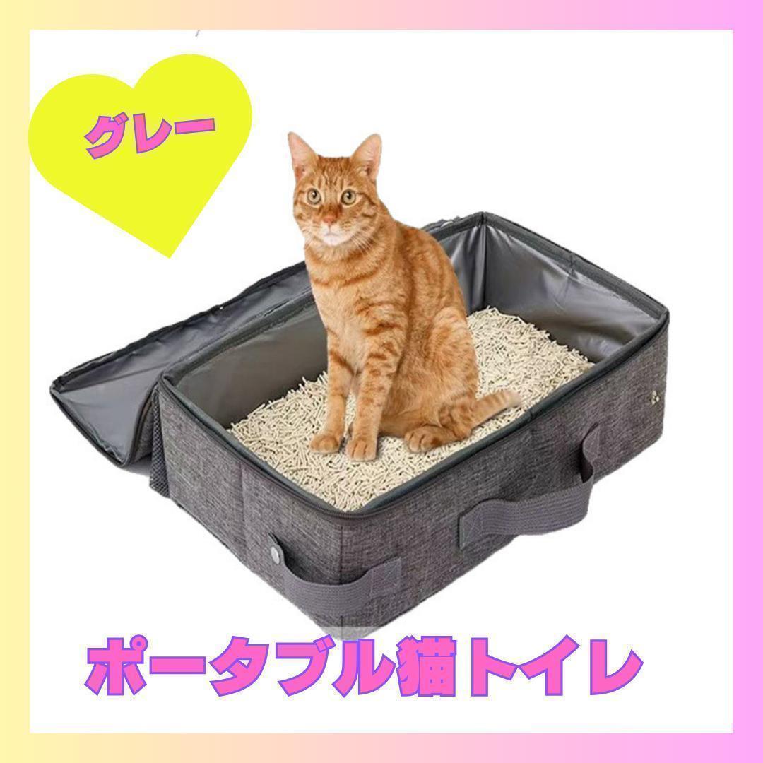 旅行折り畳み ポータブル 猫トイレ 蓋付き撥水 避難グレー 1014 折りたたみ 3452D9