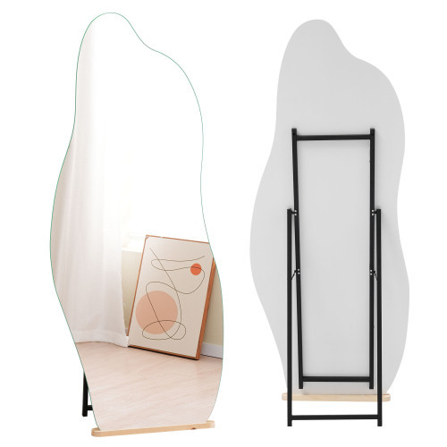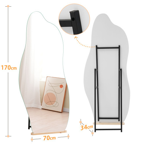全身鏡 姿見鏡 スタンドミラー ノンフレーム イレギュラミラー 立てかけ 姿見 鏡 ミラー おしゃれ 大型 飛散防止 木製台あり 170*70CM