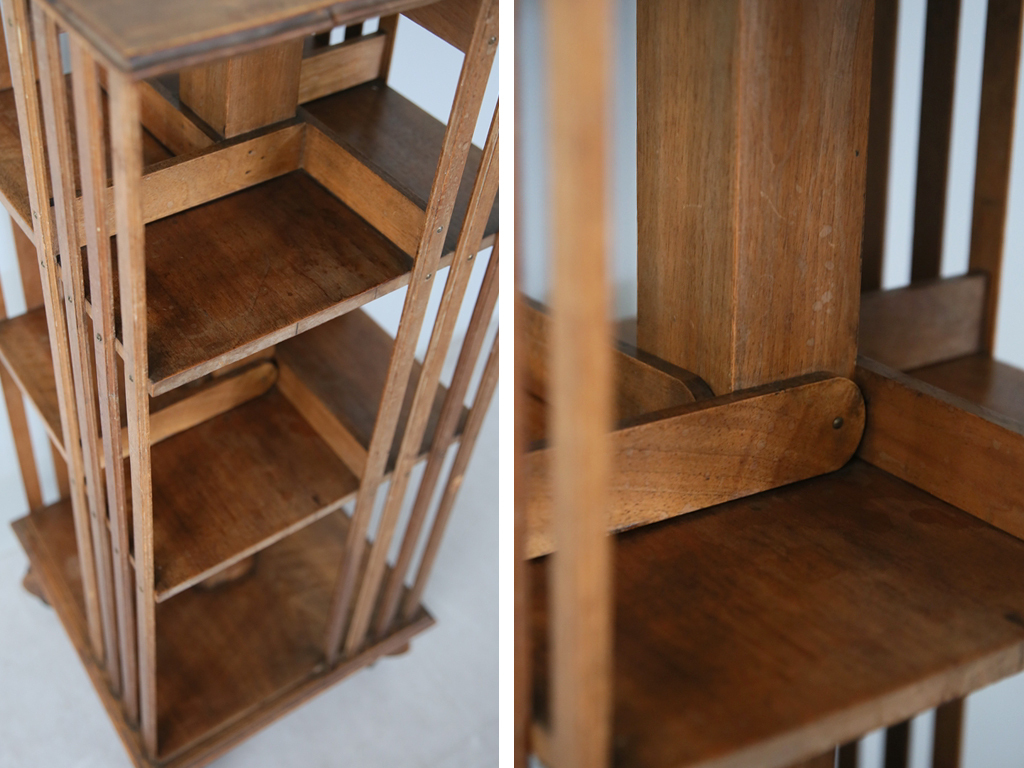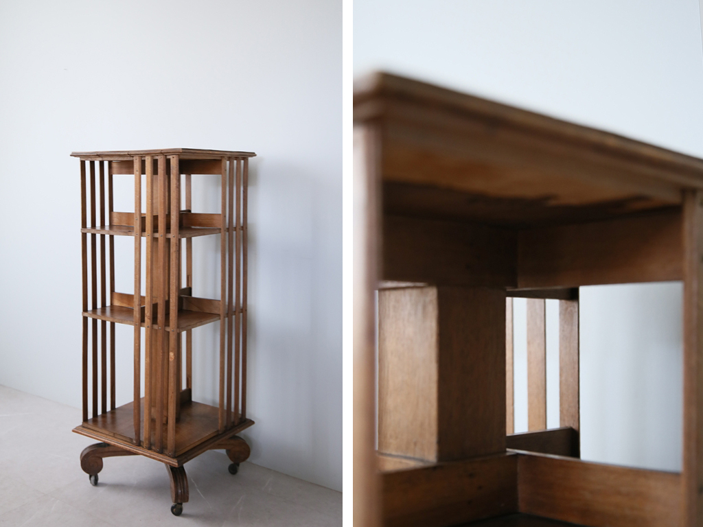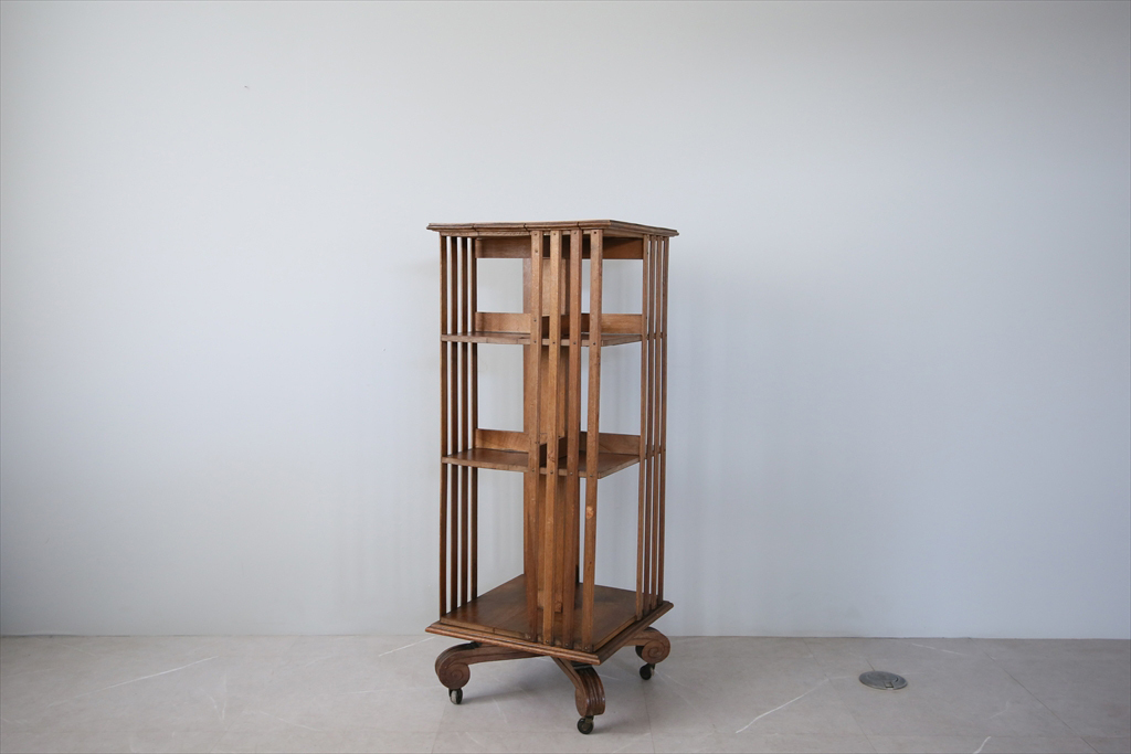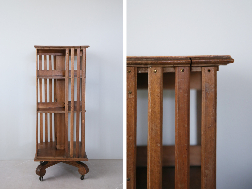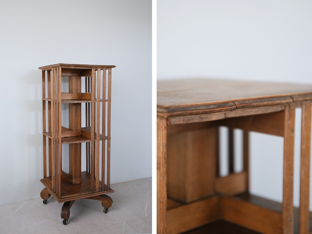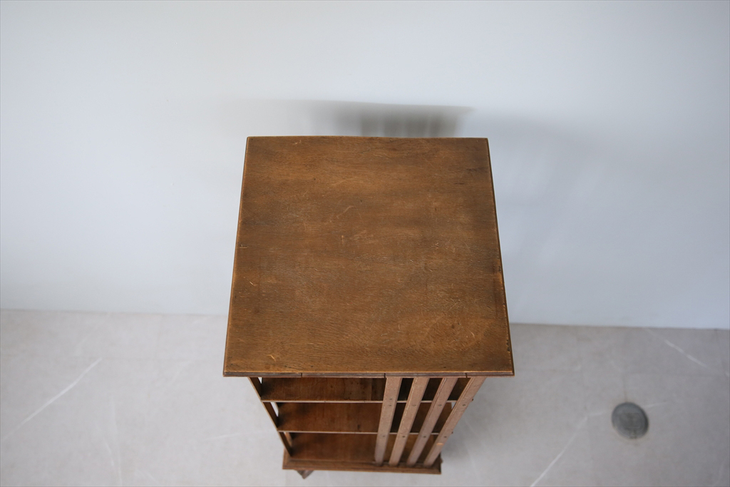 英国アンティーク◇古木の回転式ブックシェルフ/木製本棚/飾り棚/花台/食器棚/テーブル机/店舗什器/ディスプレイ台/イギリスビンテージ家具
