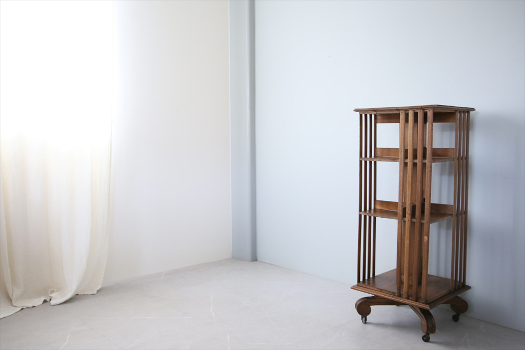 イギリスの田舎で見つけた古木の回転式ブックシェルフです。