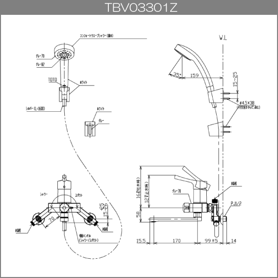 壁付シングレバーシャワー混合水栓 コンフォートウェーブ 寒冷地仕様 TBV03301Z1 TOTO GGシリーズ
