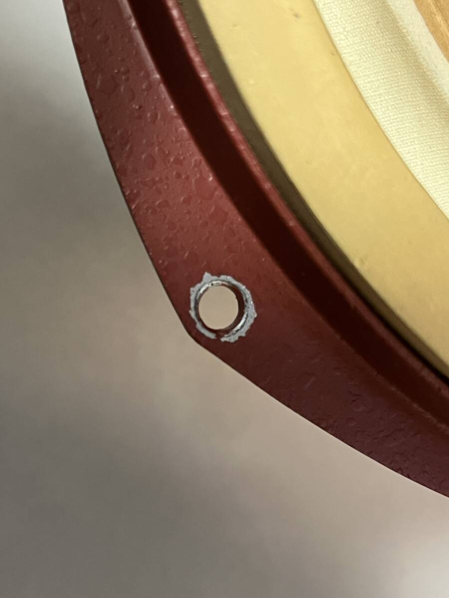 画像9は、表側のねじ穴の状態です.写真の一か所だけでなく、全てのねじ穴周りには、ねじを締めた時についた塗装の剥落があります.