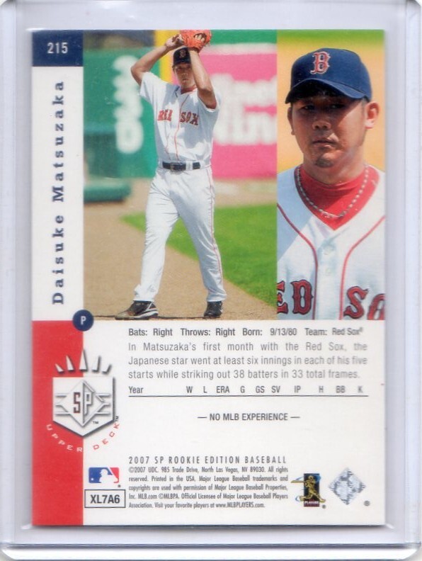 | ★☆松坂大輔 カード Vol.202 2007UD SP ROOKIE EDITION BASEBALL #215 ルーキー☆★ | |