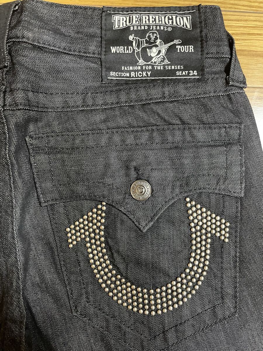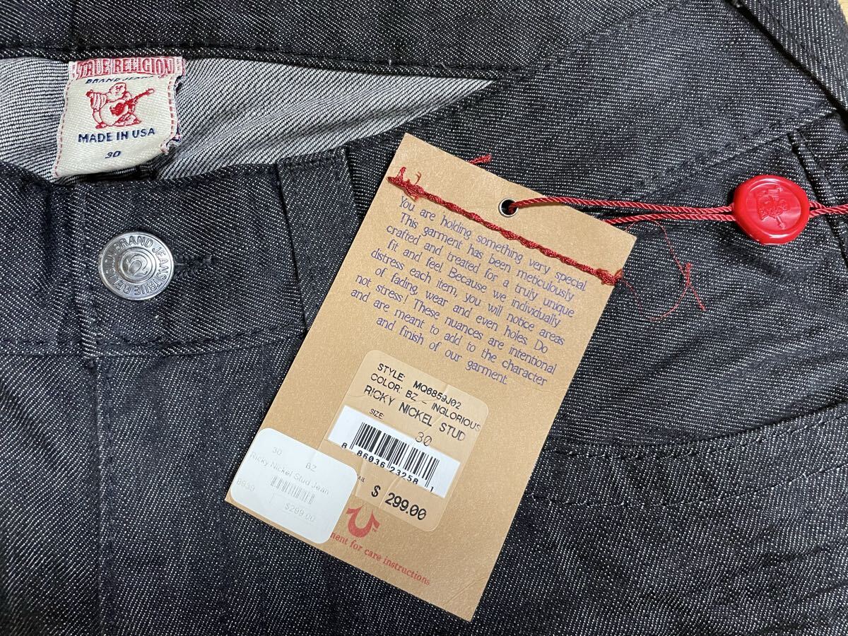新品 TRUE RELIGION RICKY STRAIGHT JEAN PANT STUD FLAP BLACK 30 トゥルーレリジョン ジーンズ スタッズ デニムパンツ ブラック
