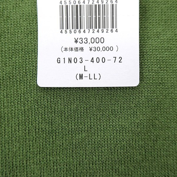 新品 未使用 紙タグあり Lサイズ 胸囲96~104 ※写真は別サイズを使用している場合がございます※ ※商品に記載されたサイズ・寸法です※ 肩幅42cm 身幅53cm 袖丈62cm 着丈68.5cm ※伸縮性が高い素材のため多少誤差が生じる事があります※ 毛100% グリーン |