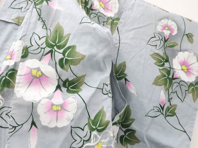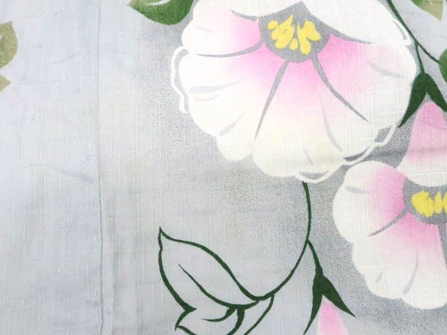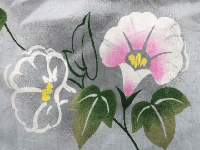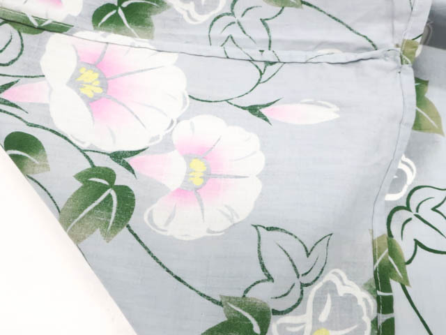 リサイクル商品のため、所々しみがございますが着用可能なお品です。 地色は灰です。 1枚目の画像が近いお色かと思われます。 素材は綿です。 |