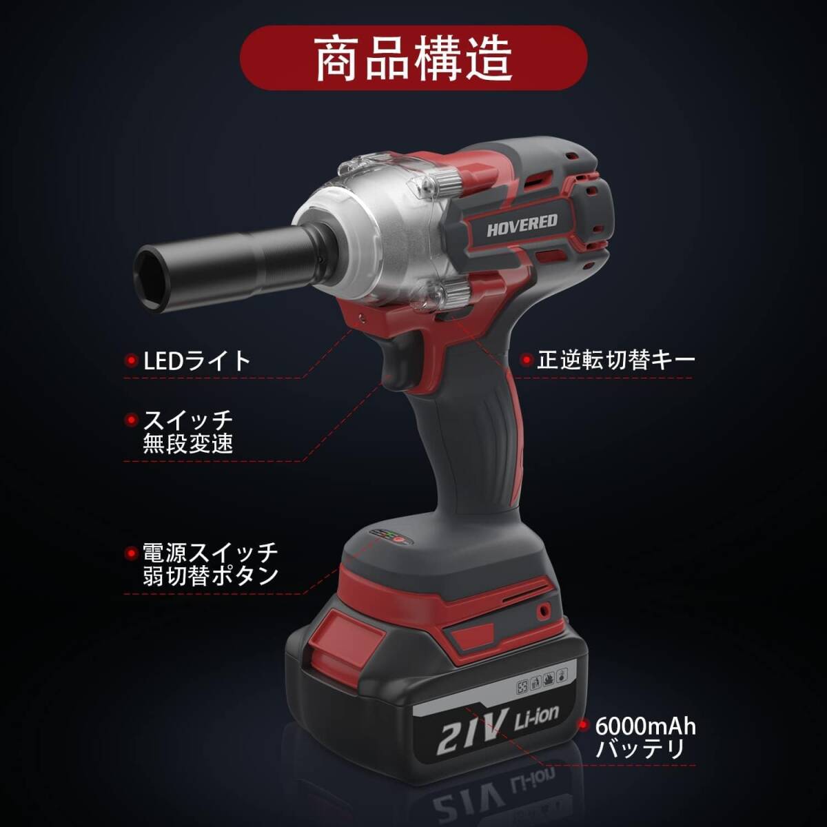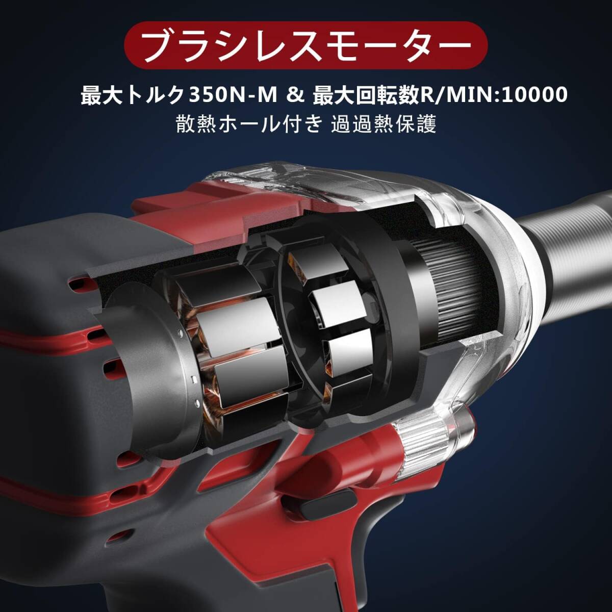 日常使い 電動インパクトレンチ コードレス ブラシレスモーター 自動停止 最大ト