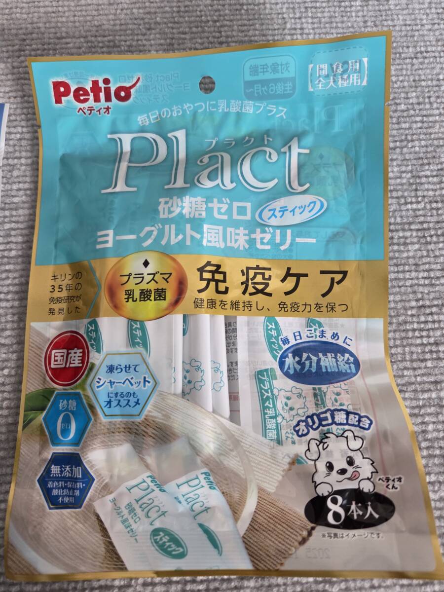 ① ペティオ プラクト 砂糖ゼロ スティックヨーグルト風味ゼリー 8本入り 国産、無添加、砂糖ゼロ 全犬種用 賞味期限2025年12月 凍らせてシャーベットにするのもオススメです。水分補給に。