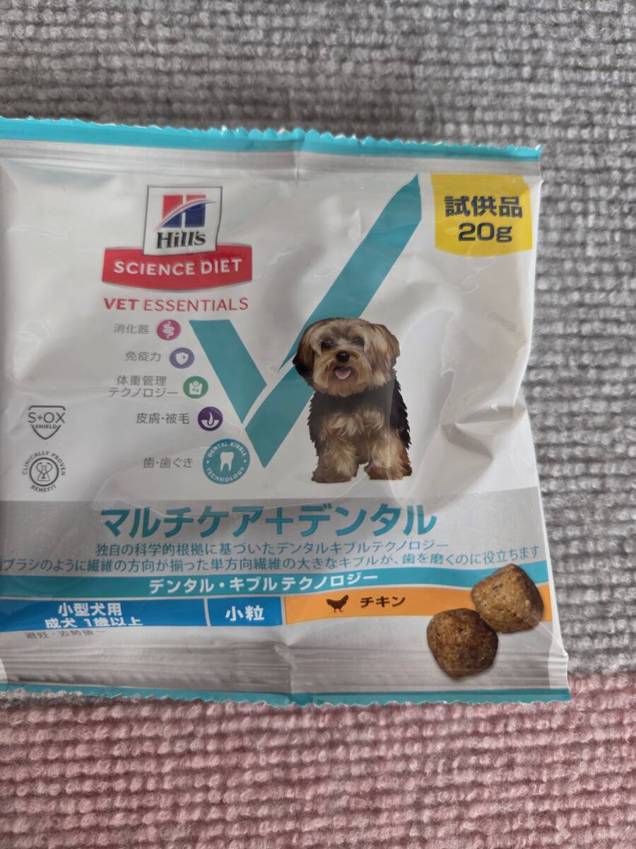 ⑥ ヒルズ マルチケア+デンタル ドライフードの試供品20g 小粒 チキン 1歳以上小型犬に。