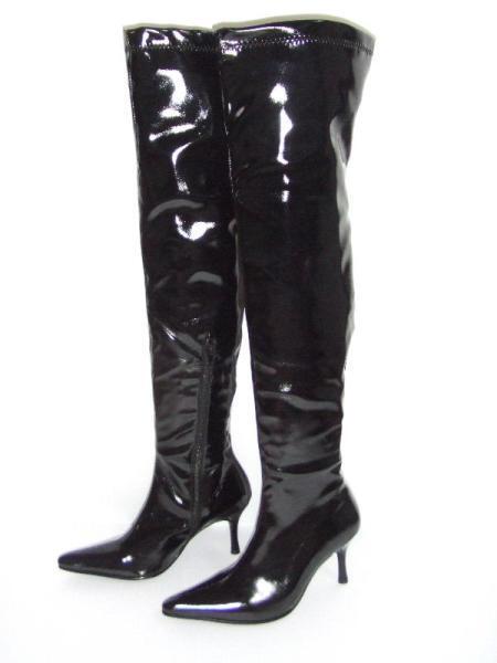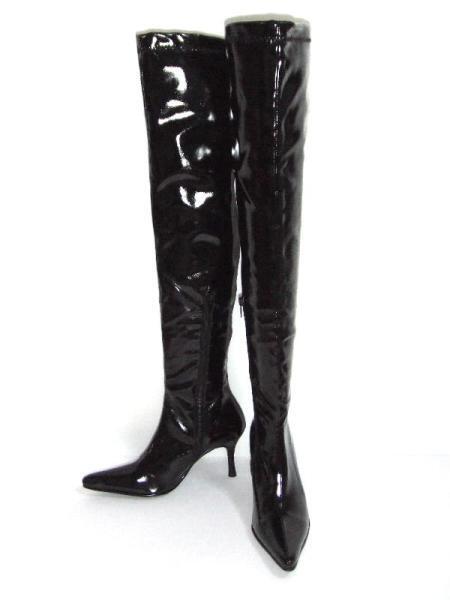 ●ストレッチエナメルニー黒色short:27cm:検索コスプレ