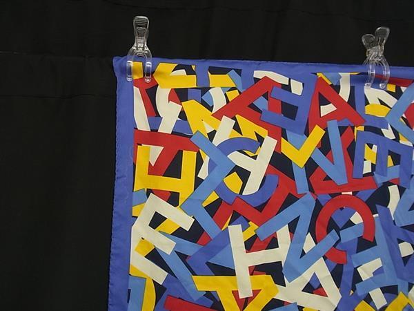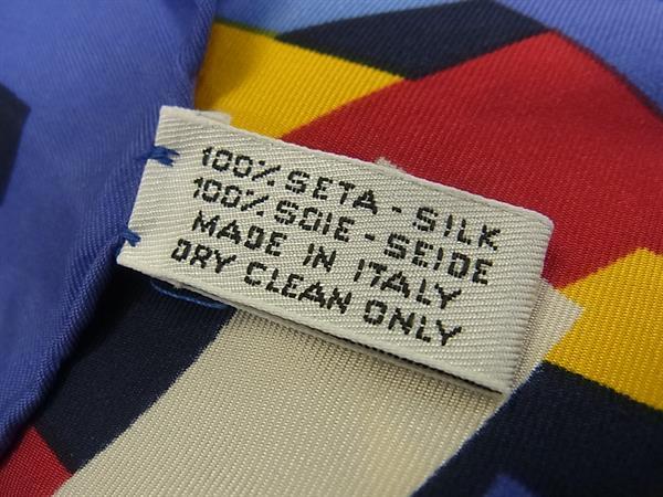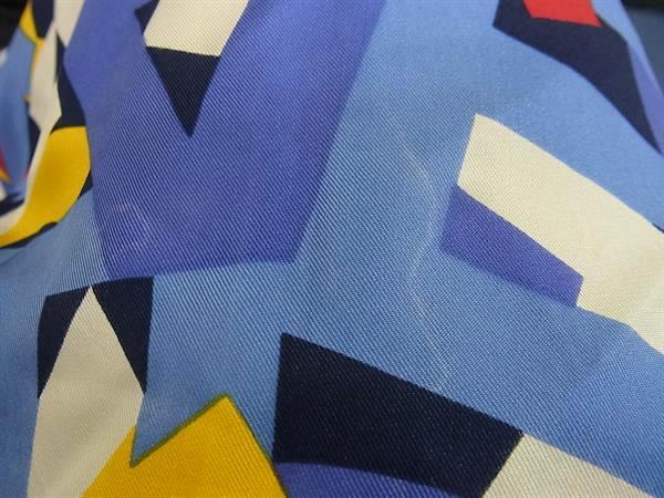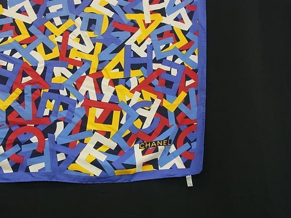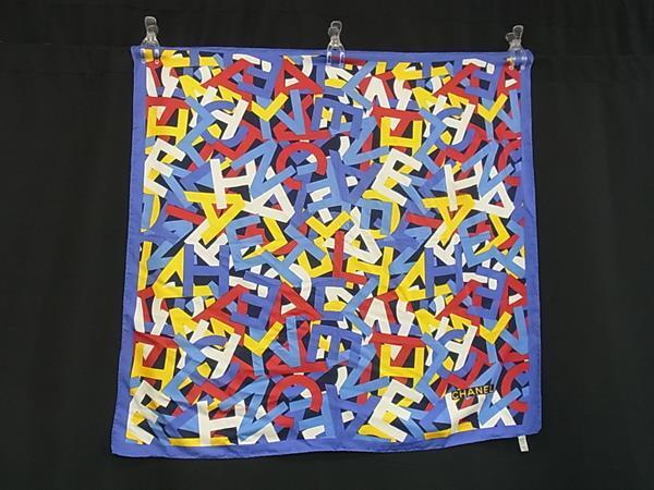 1円 CHANEL シャネル シルク100% 総柄 大判 スカーフ ストール ショール レディース メンズ ブルー系×マルチカラー FU5932