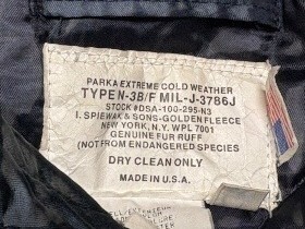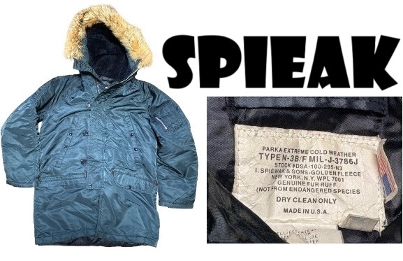 新品同然USA製スピワックSPIEWAK★コヨーテファー★N3Bフライトジャケット★ネイビー★38