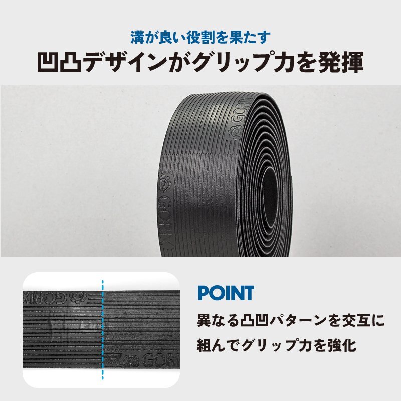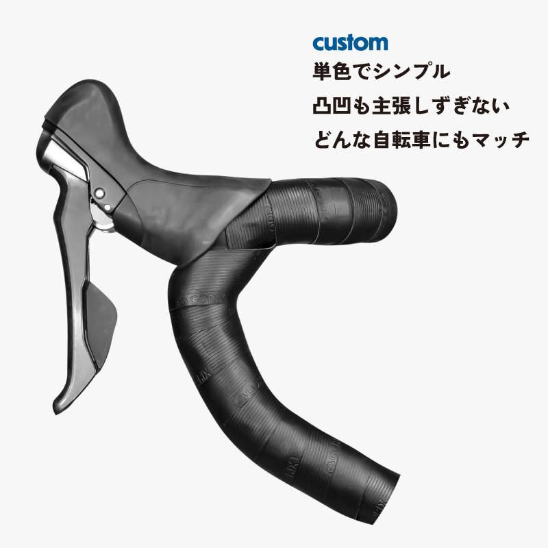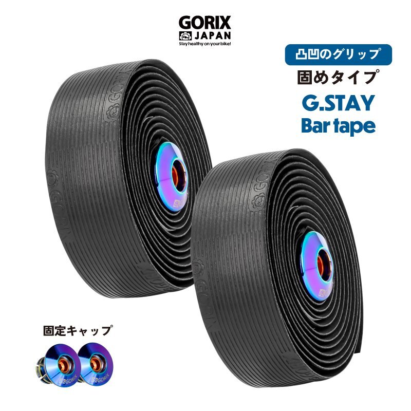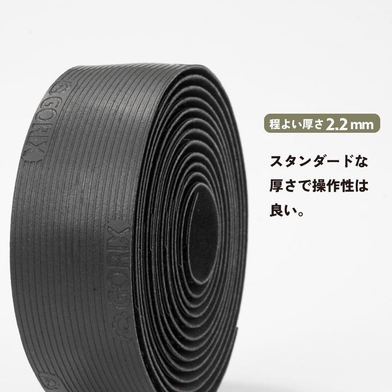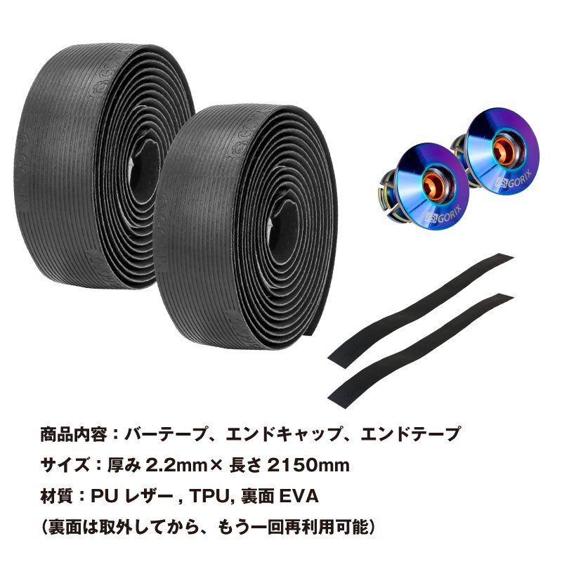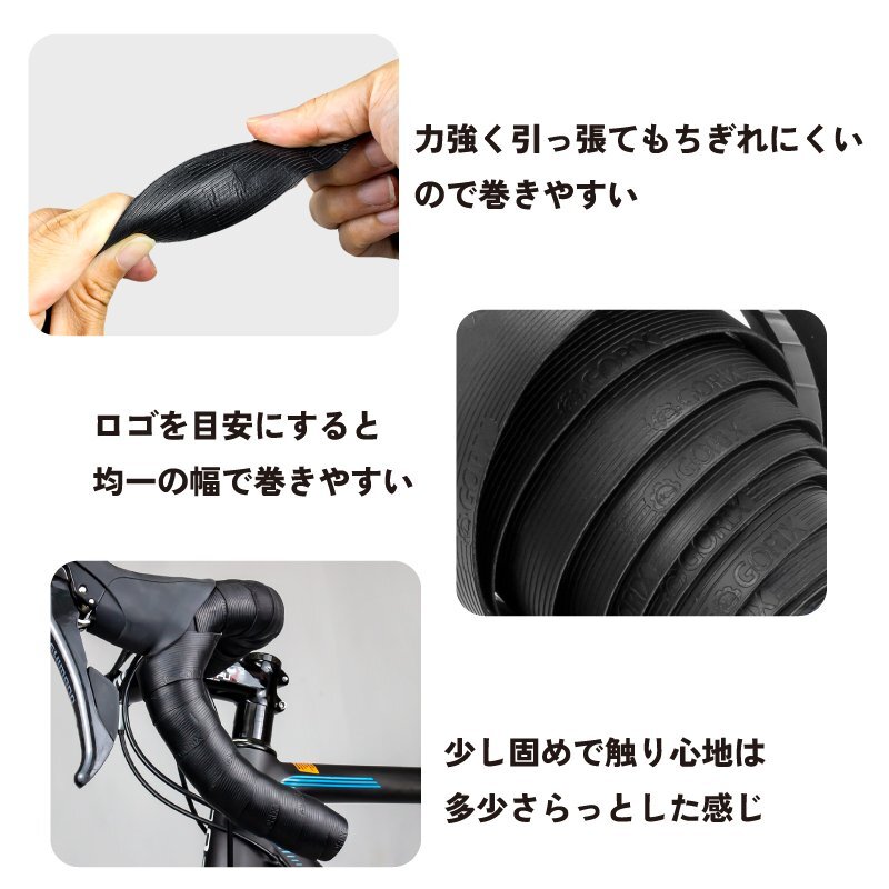 表面に凸凹の溝デザインを施してグリップ力を高めたのが特徴のバーテープです。 少し固めなので段差が多い道でもしっかりと衝撃を緩和します。 アクティブな道が多いオフロードやグラベルロードにも最適です。 強度と耐久性を持ちあわせていて強く引っ張てもちぎれにくいので扱いやすいバーテープとなっています。 シンプルで洒落たマットブラックで自転車のカスタムにも最適です。 エンドキャップはネジ式タイプのオイルスリックカラーでワンポイントに。 [溝デザイン] バーテープ表面に2パターンの異なる凸凹デザインを組み合わせてグリップ力を強化しています。 [厚さ2.2mm] 厚さ2.2mmでスタンダードタイプ、操作性と衝撃吸収力理想的は高いコントロール性を発揮 厚い分悪路や砂利道、段差が多い道でもしっかりと衝撃を緩和します。 [握り心地] 表面はグリップ感はあるが少しさらさらした感じで固め。ベタベタしない。 [デザイン] シンプルなマットブラックに巻きやすいようにロゴをあしらっています。 どんな自転車にもマッチするオールブラックです。 [ネジ式エンドキャップ] バーテープ先端部分を固定してバーテープがほどけないようにするエンドキャップは、転倒時やぶつかったりした時にハンドル先端部分の破損を防ぐのにも役立ちます。 このエンドキャップは外れにくいネジ式タイプで固定力が通常のエンドキャップより優れています。 美しくかっこいいオイルスリックカラーはハンドル周りのワンポイントカスタムに最適。 商品内容バーテープ×2本、オイルスリックエンドキャップ×2個、エンドテープ×2枚 材質表面PUレザー, TPU, 裏面EVA(裏面は取外してから、もう一回再利用可能) サイズ厚み2.2mm*長さ2150mm | |