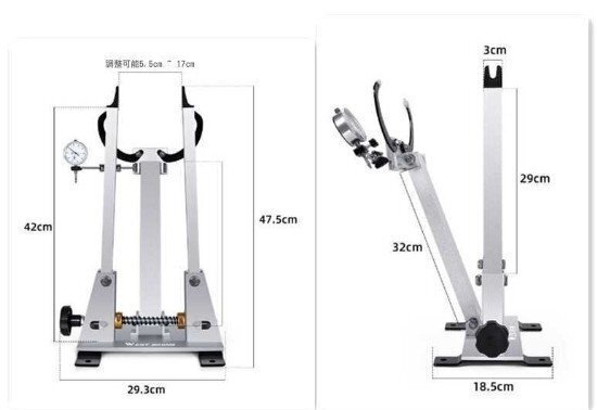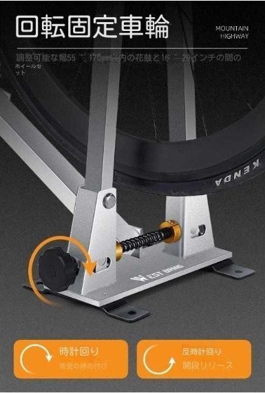 ホイールの対応: 幅広いハブに対応し、55~200mmの調整範囲があります。これにより、16~29インチの自転車ホイールや702Cロードバイクリムに対応しています。