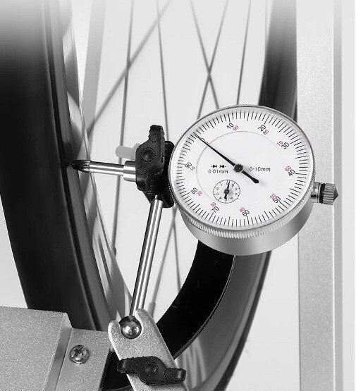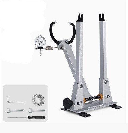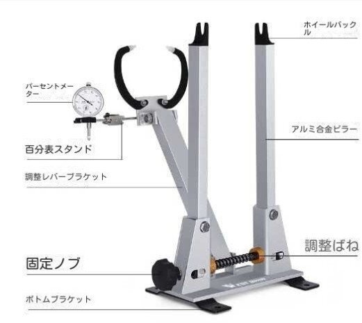 調整機能: 精度の高いダイヤルゲージが装備されており、微調整が簡単に行えます。ホイールの振れを正確に測定し、調整することが可能です。
