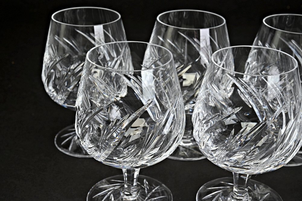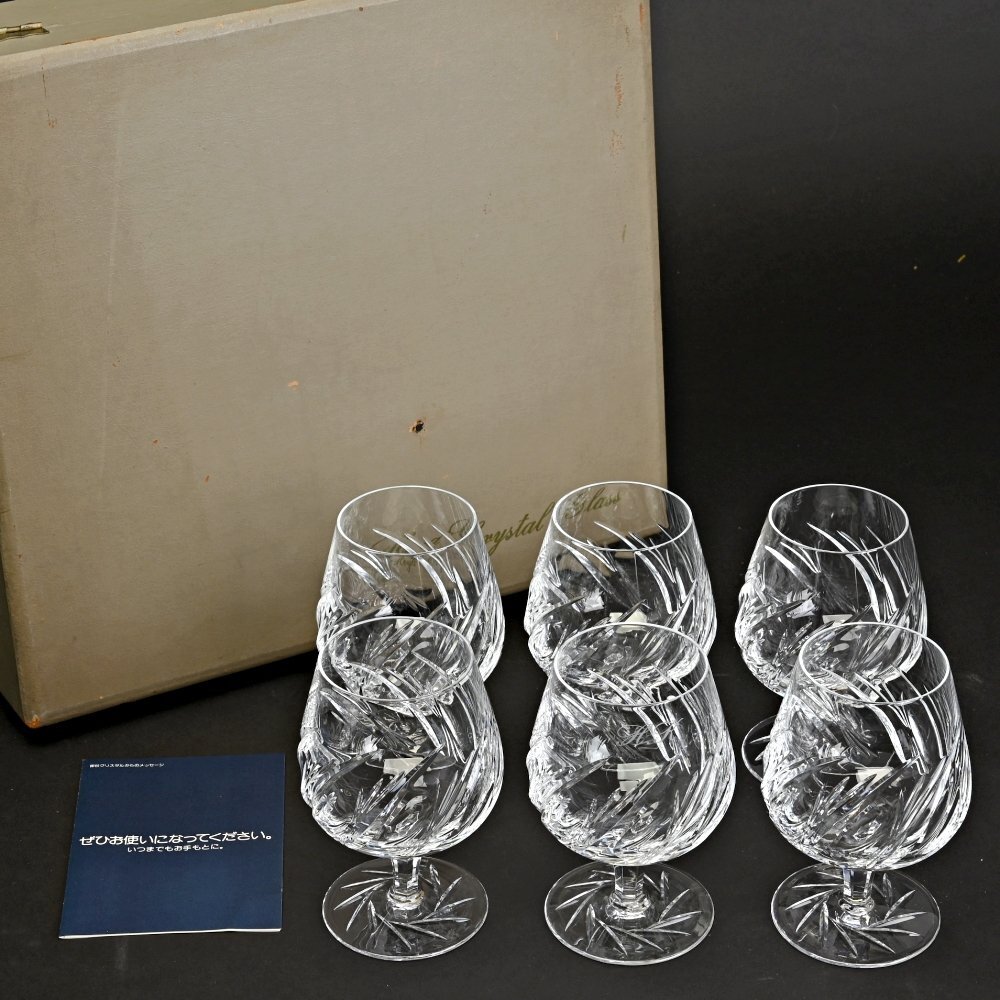 IJ3103◆HOYA ホヤ クリスタルグラス ブランデーグラス 6客 切子 カットガラス◆h