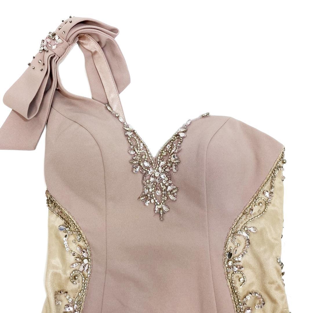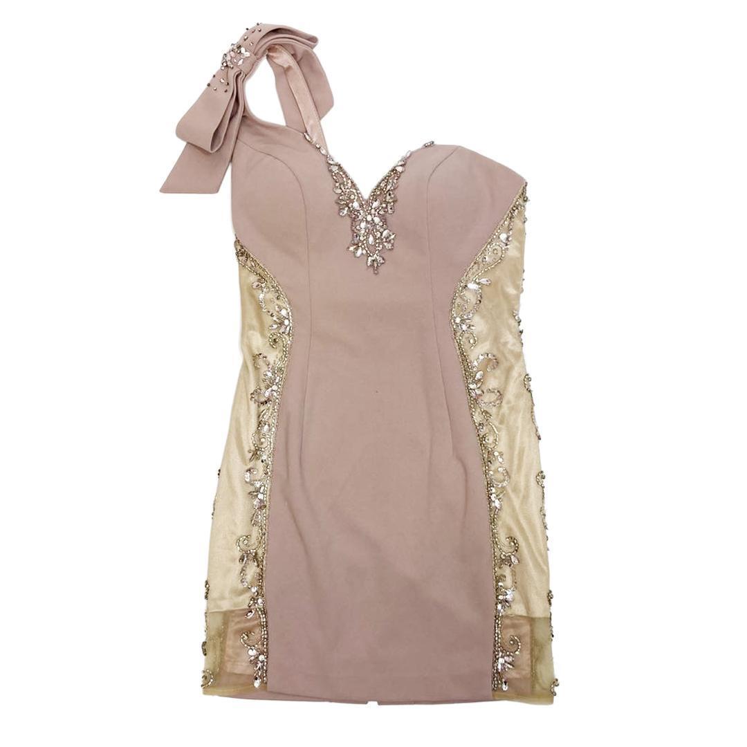 煌めくビジューがラグジュアリーなワンカラーミニドレス。