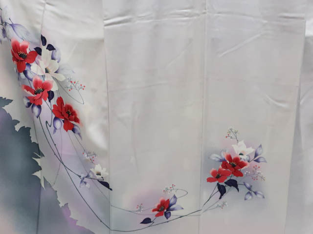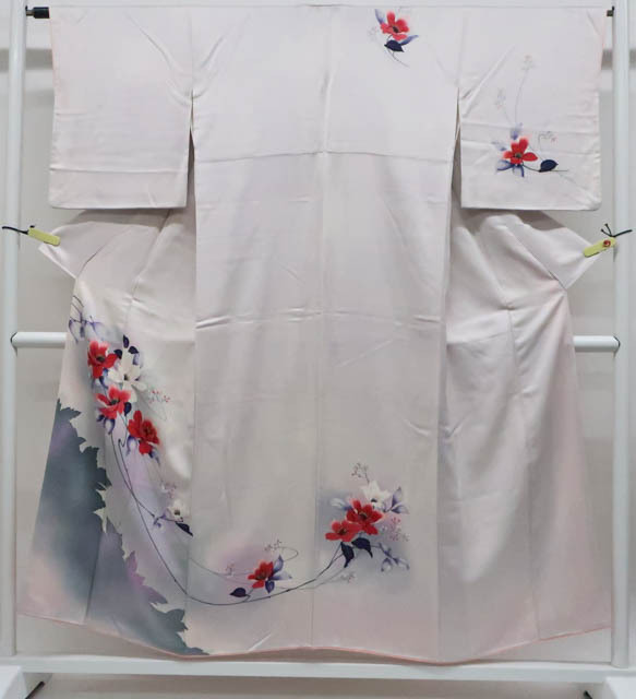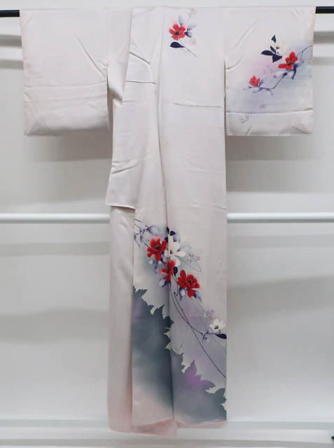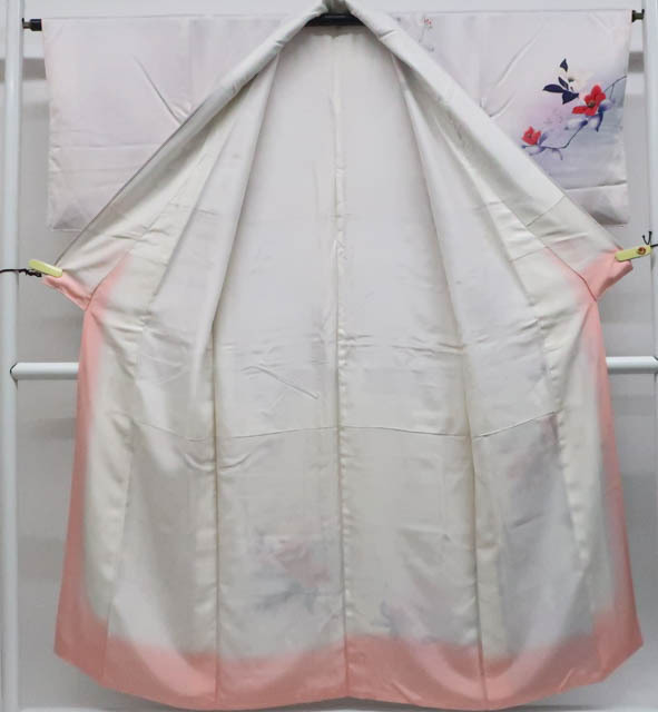 リサイクル商品のため、全体的に所々シミ汚れがございます。 地色は薄ピンク色です。 1枚目の画像が近いお色かと思われます。 素材は正絹です。 |