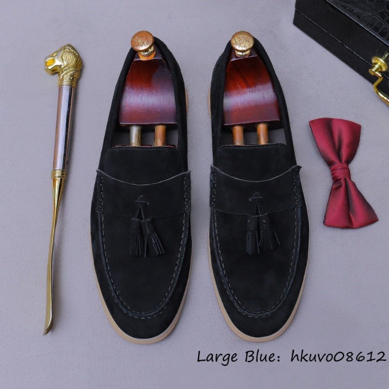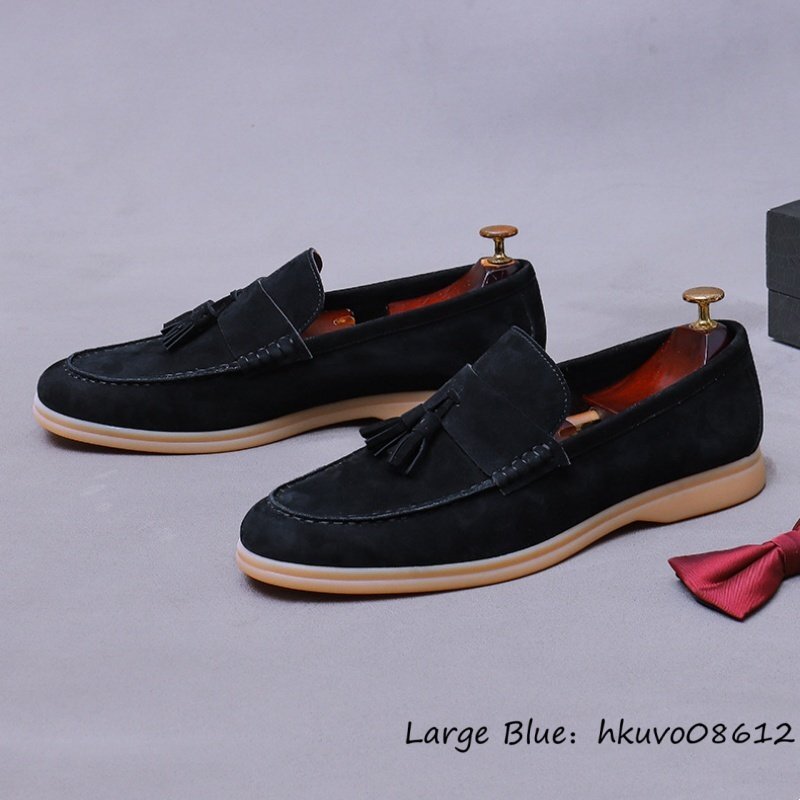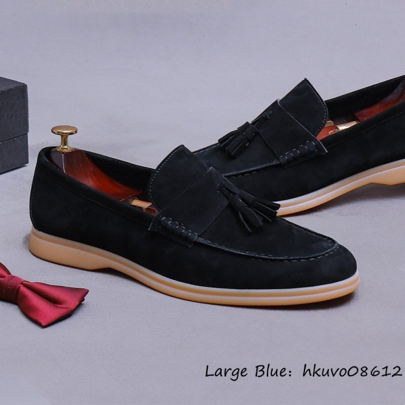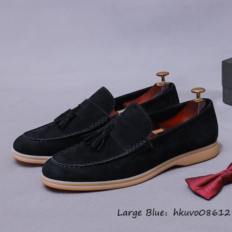超希少■ローファー スリッポン スエード革 ドライビングシューズ 職人手作り ビジネスシューズ 紳士靴 タッセル 本革革靴 ブラック 26.5cm