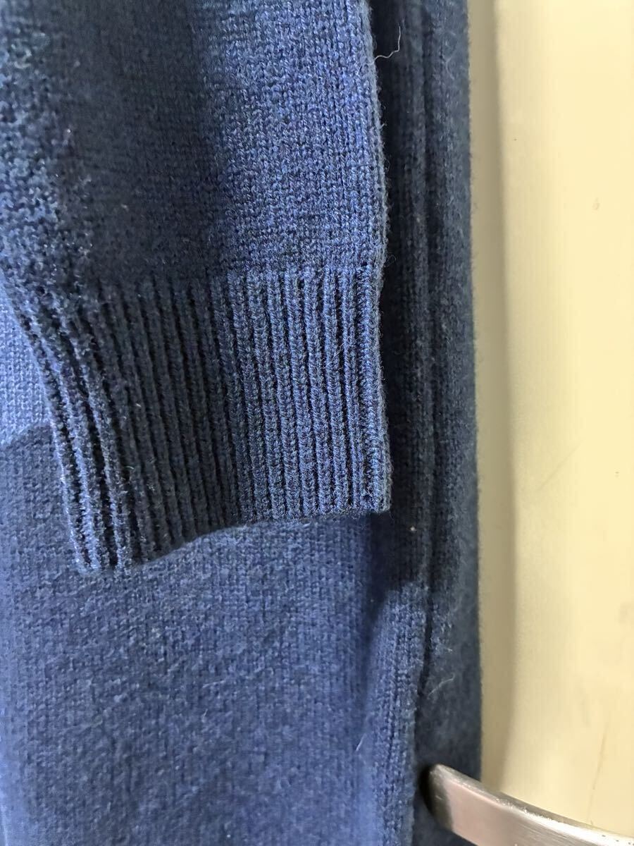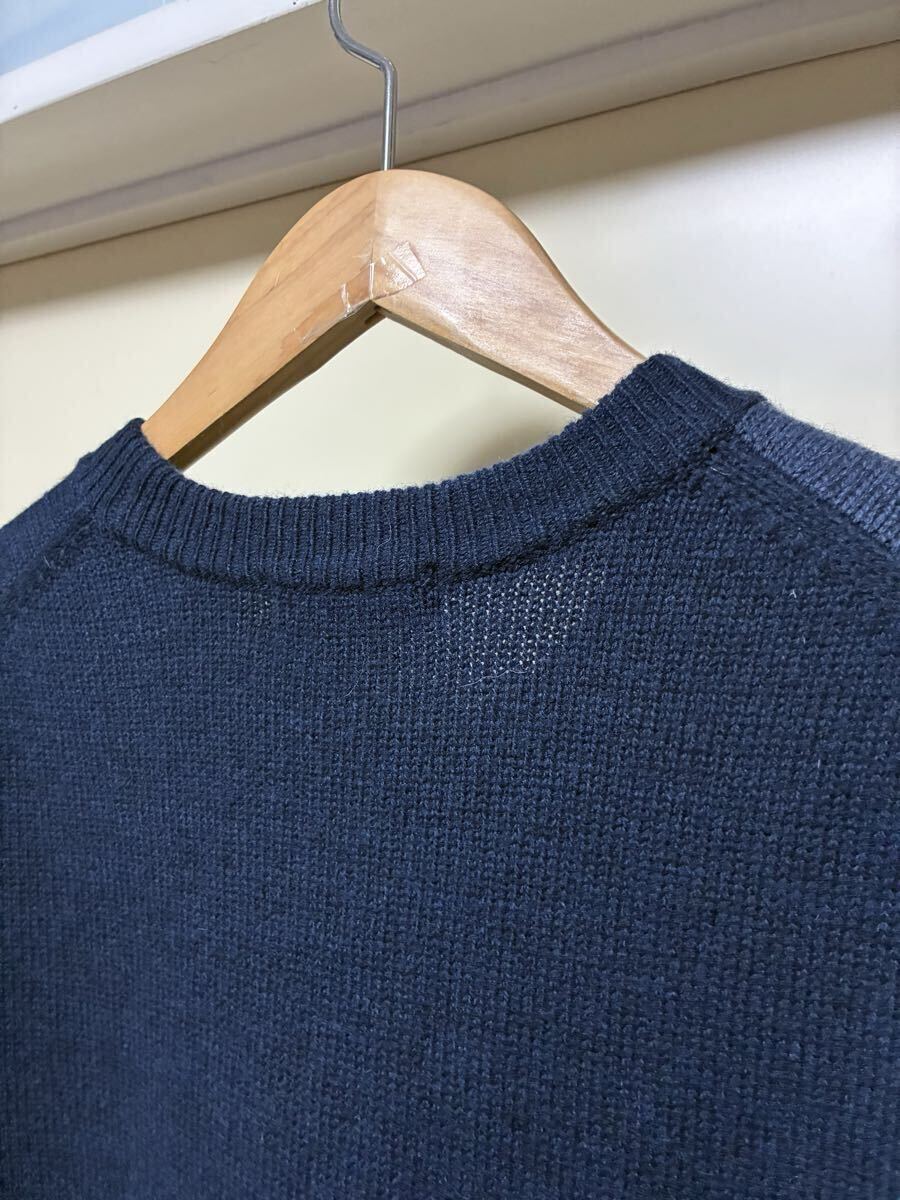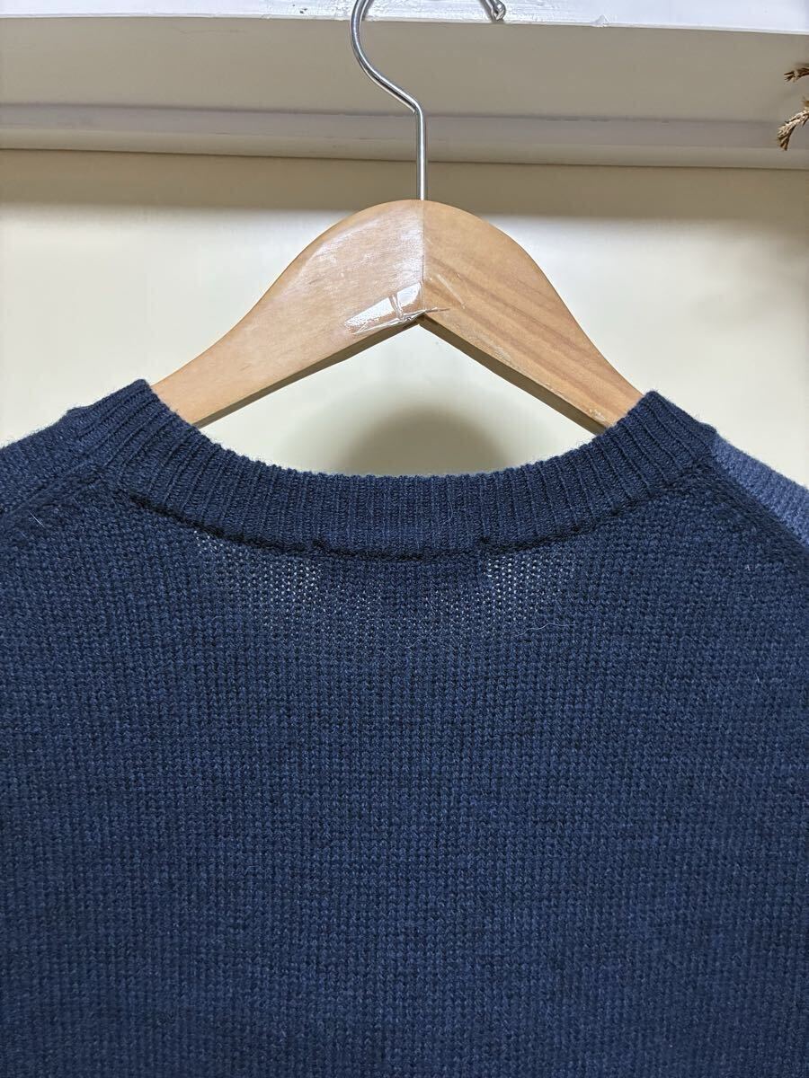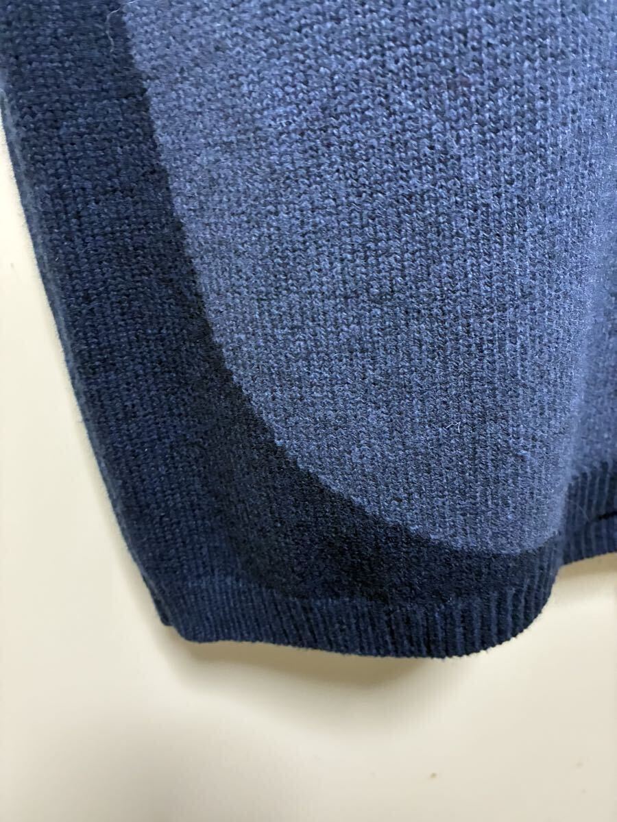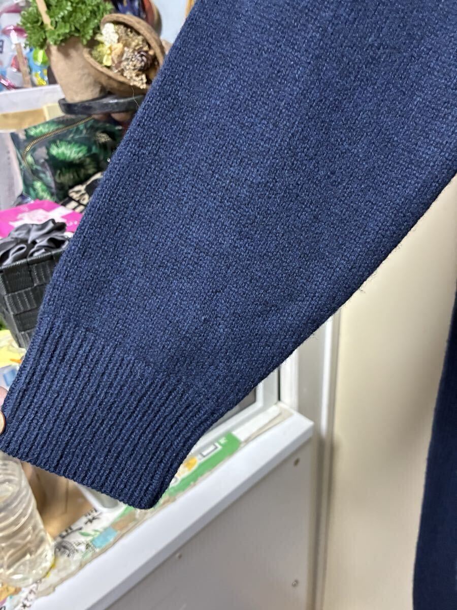 ★UNIQLO.MARIMEKKO(マリメッコ)★落ち着きのある色合いでお洒落なデザインのニット.ワンピースになります。ネイビー×ブルー系の2色使いで曲線のお洒落なデザインになっています。後ろ側はネイビーカラーの無地になっています。首周り、袖口、裾辺りはリブ仕上げになっていて揺ったりとしたお洒落な一枚に仕上がっています。