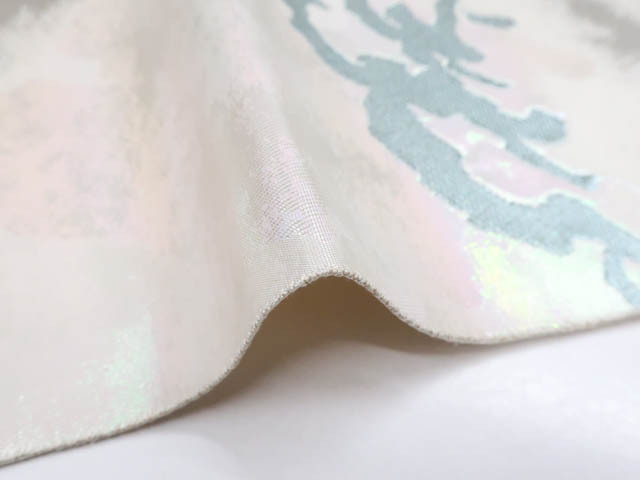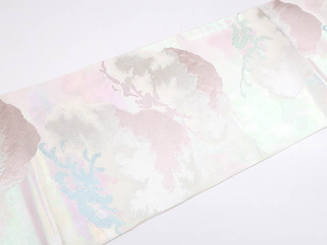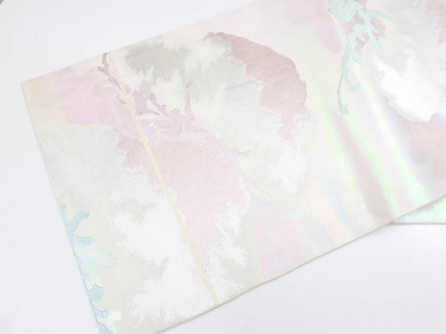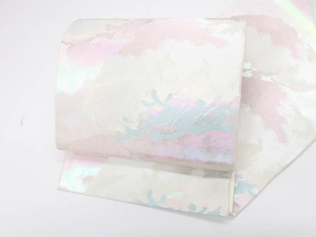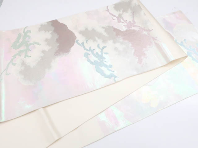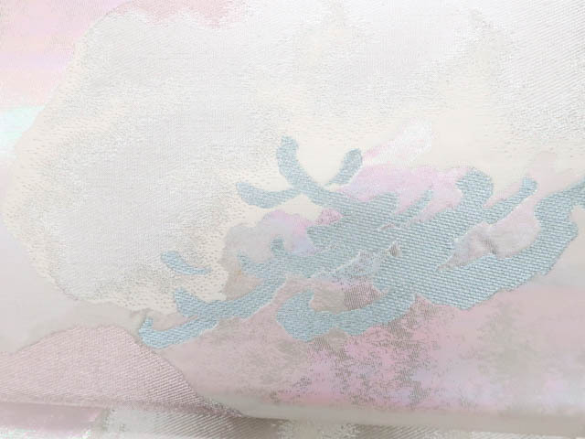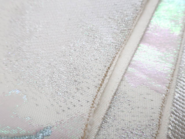 リサイクル商品の為、太鼓下部に耳スレがございますがご着用いただけると存じます。 地色は生成です。 1枚目の画像が近いお色かと思われます。 素材は正絹です。 |