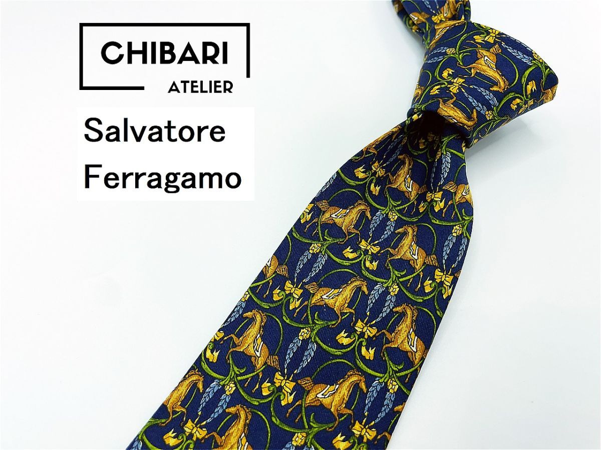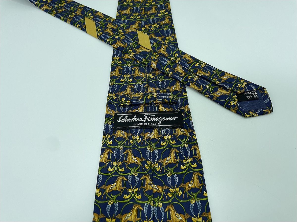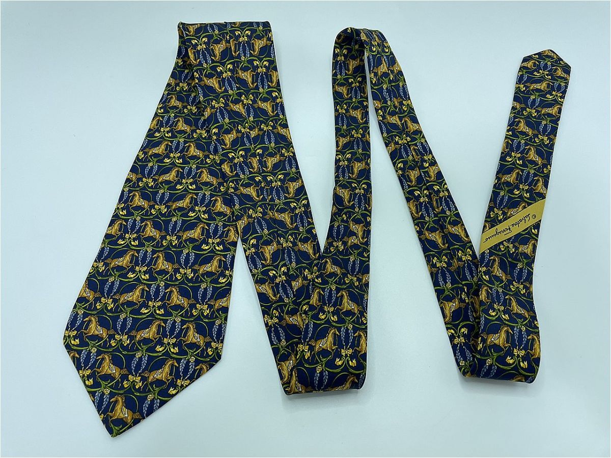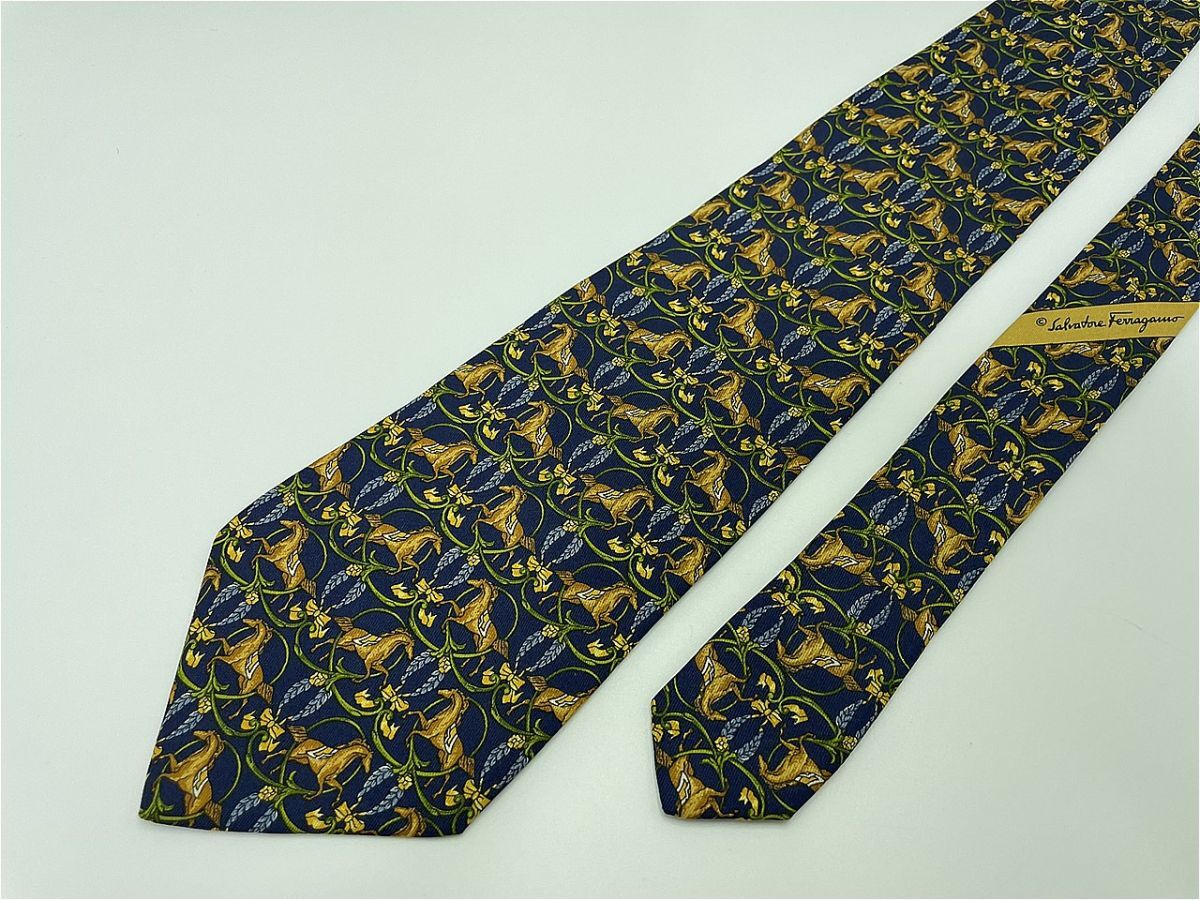 【超美品】Salvatore Ferragamo フェラガモ 動物柄 ネクタイ 3本以上 送料無料 メンズ ネイビー 1101066