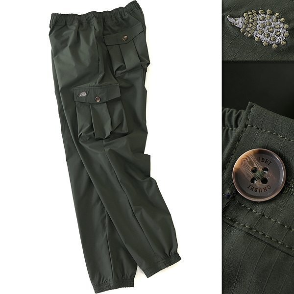 【CHUBEI】 毎日の装いを心から楽しむことをコンセプトに、機能的で遊び心を加えたSTANDARDアイテムを提案。タウンカジュアルとアウトドアカジュアルをミックスし、様々なシーンで活用頂けるライフスタイルブランド。 軽量で伸縮性が高いテクニカルストレッチリップストップ素材を使用したカーゴジョガーパンツです。 空気を着ているような軽さで、体の動きに合わせて伸び縮みするためストレスを感じさせず、リップストップの特徴である格子状に織り込まれた強化糸が生み出す凹凸感により、サラッとドライタッチで肌離れも良い仕上がりとなっています。 ウエストはゴム入りでしっかり伸縮し、太もも部分はゆったりめで裾にかけて細くなるシルエット、裾ゴム仕様でスポーティーに仕上げており、足元がスッキリとしているのでスニーカーとの相性も抜群です。 リラックスできる快適な穿き心地を実感いただけて、春夏~秋口まで着られるロングシーズン性においても魅力的です。 ブランドアイコンであるハリネズミのワンポイント刺繍、ピスネーム装飾、CHUBEIネーム入りボタンなど、細かな部分にまでこだわってデザインされており、幅広いシーンで活躍してくれるアイテム。 ご自宅で手洗いが可能なウォッシャブル製品なので、ケアがしやすくデイリーに着用できるのも嬉しいポイントです。 別売りの同素材ジャケット【CH1441120】やブルゾン【CH1441121】とのセットアップも可能です。 【デザイン】 ・ノータック ・ジッパーフライ ・ジョガーシルエット ・ウエストゴム入り ・ウエストドローコード入り |
