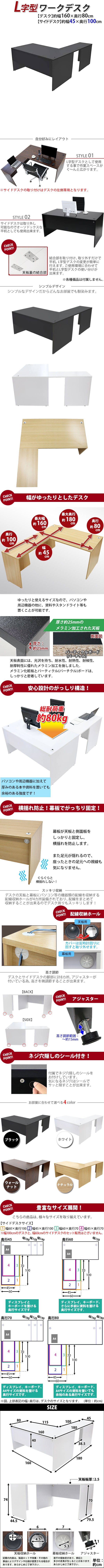 | 商品紹介 | ■作業スペースを広く確保出来る、L字型ワークデスクです。 ■サイドデスクの幅が約45cmのタイプです。 ■会議室や事務所等、オフィス家具として様々なシーンでお使いいただけます。 ■天板には、メラミン加工を施しています。 ■幕板が天板と側面板をがっちりと固定!横揺れを防止します。 ■ネジ穴隠しのシール付き。 ■デスクの天板と幕板に配線収納ホールが2カ所ずつ備わっています。 ■アジャスターで高さの調節が可能です。(高さ調節範囲〜約15mm) ※こちらの商品は、組立て式です。組立てにはプラスドライバーが必要です。お客様でご用意ください。 ※組立図が付属します。 ※サイドデスクの取り付けはデスクの左側専用となります。 ■材質:パーティクル(パーチクル)ボード(メラミン加工)(本体、サイドデスク)、プラスチック(アジャスター、配線収納ホール) ■重量:約60kg(デスク:約44kg、サイドデスク:約16kg) ■総耐荷重:約80kg ●新品商品ではありますが、輸入商品の為、多少の擦り傷などがある場合がございますので、ご納得の上ご購入下さいませ。 ●ご購入後、お客様ご都合によるご返品、ご返金等は一切お受け致しておりません。 ●本商品を使用した際に発生したトラブル、事故につきまして、当社は一切の責任を負いません。ご使用に関しましては、全て自己責任にてお願い致します。 ※カラーはブラックとなります。 |