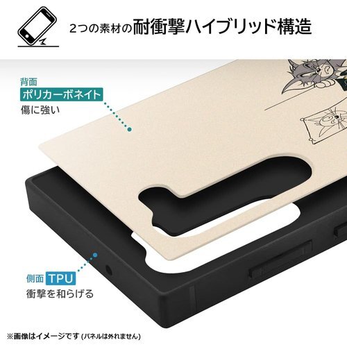 TOM AND JERRY and all related characters and elements (C) & (TM) Turner Entertainment Co. (s23) 個性的な四角いフォルムと、衝撃に強いTPU素材の側面、薄くて軽く透明度の高いPCパネル を背面にセットした Galaxy S23用 耐衝撃ケース KAKUハイブリッド。端末側面保護、衝撃吸収エアクッション付。背面パネルには『トムとジェリー ( トムジェリ )』のデザインがプリントされ、スマートフォンを鮮やかに彩ります。 キャラクター名: トム ( TOM ) / ジェリー ( JERRY ) / タフィー ( TUFFY ) ストラップホール付 ワイヤレス充電対応 TOM and JERRY とむあんどじぇりー とむとじぇりー TOM とむ JERRY じぇりー TUFFY たふぃー ニブルス Warner Bros. WB