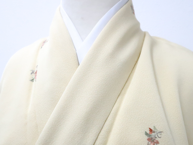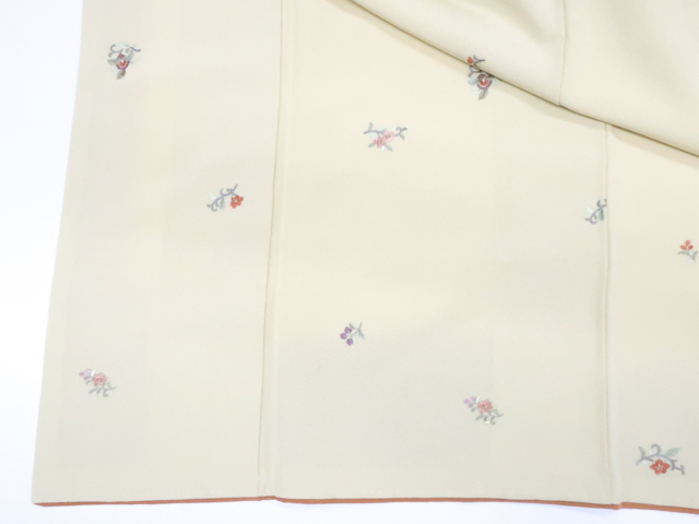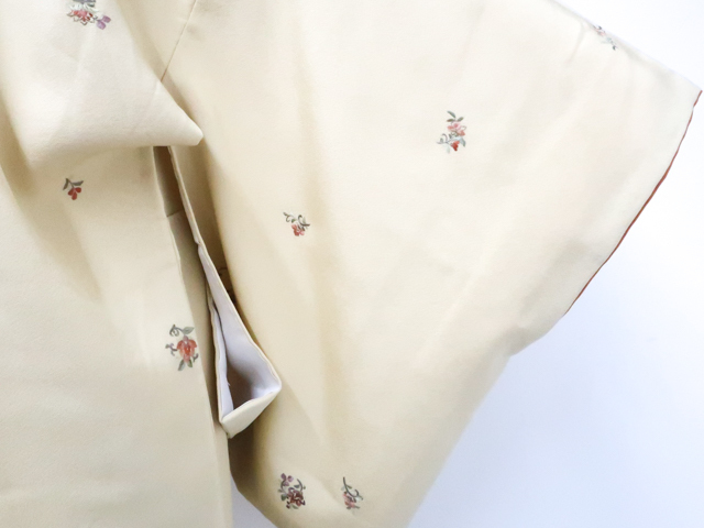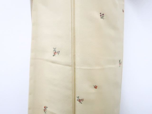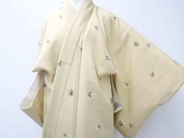 リサイクル商品のため、全体所々薄汚れがございますが着用可能なお品です。 地色は薄黄土です。 1枚目の画像が近いお色かと思われます。 素材は正絹です。 |