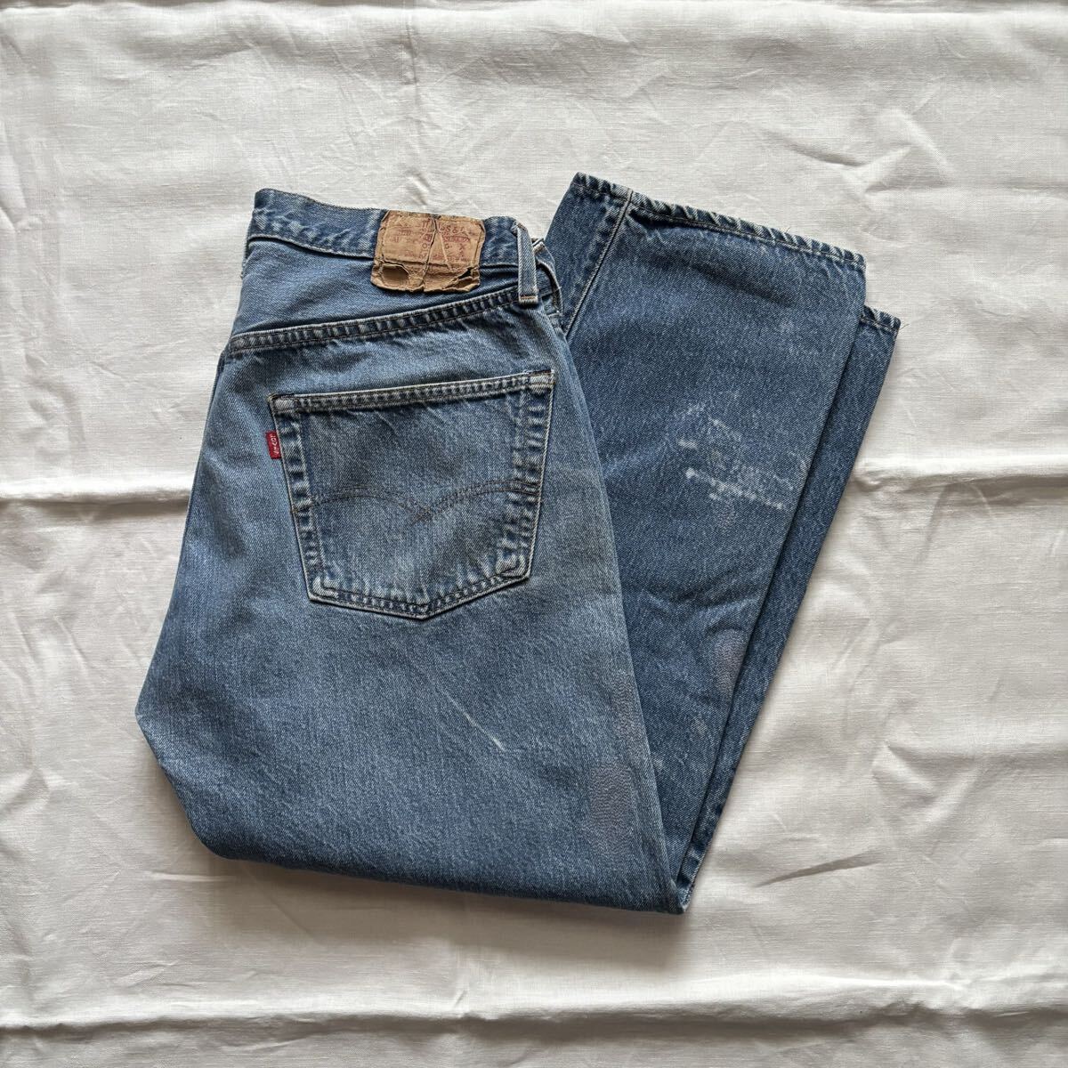 アメリカで購入しましたリーバイスの赤耳501になります。表記36x30で実寸は34x26ほどです。オリジナルレングスでスッキリ履けると思い購入しました。 インスタグラムアカウントよりDMで追加の画像を送ることもできます。 インスタグラムlink 落札後24時間以内に連絡を頂けない場合は落札者都合にて削除いたします。新規の方、悪い評価の多い方はこちらの判断で削除いたします。 ビンテージ古着に理解のある方の入札をお願いします。神経質な方は入札しないでください。ノークレーム、ノーリターンでお願いします。気になることは終了12時間前までにご質問ください。土日祝日の発送は対応しておりません。ビンテージですので状態は画像を確認してください。画像も商品説明の一部になります。悪い評価が多い方でお取引希望の場合は必ず質問欄よりご一報ください。オークション終了後迅速に対応していただけ、受取連絡も速やかに行なって頂ける場合のみお取引お願いします。1000円スタートなどは基本断捨離で不必要な物を処分しておりますのでジャンク品としてご理解ください。 同時出品のオークションも見てください。 「その他の出品物。」