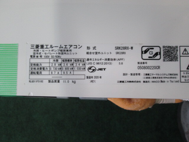 当社1ヶ月保証/'20年 8~12畳 三菱重工 エアコン 2.8kw