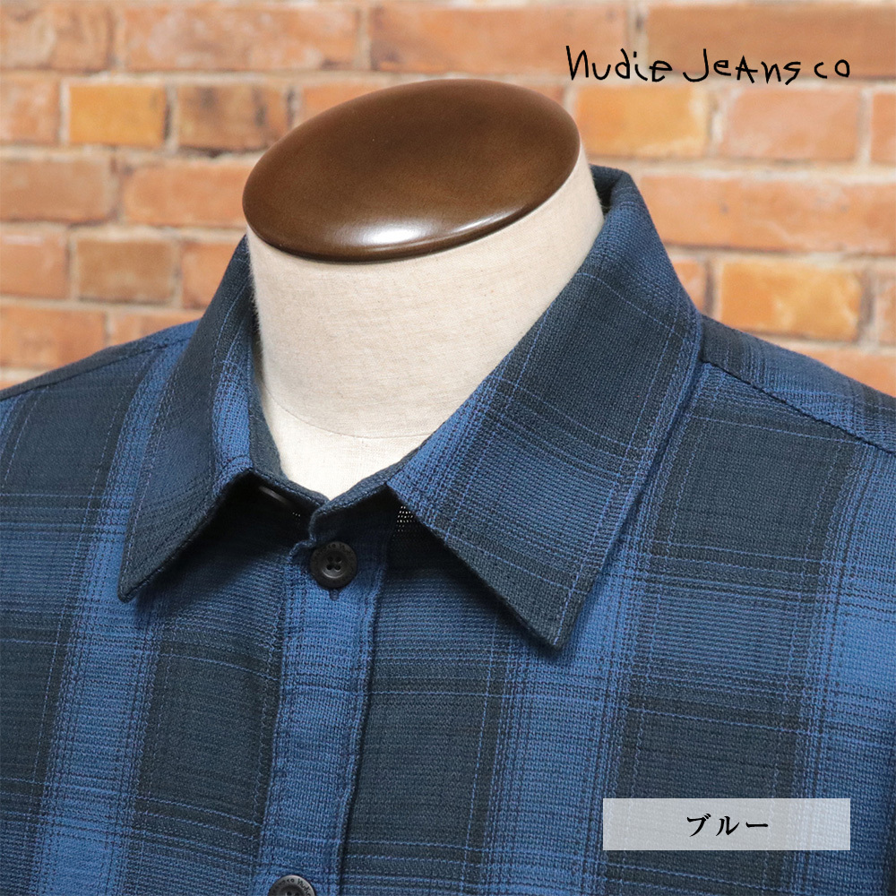 1円/Nudie Jeans/Mサイズ/長袖シャツ STEN SHADOW CHECK チェック オーガニック ヌーディージーンズ 新品/青/ブルー/me198/