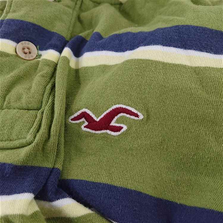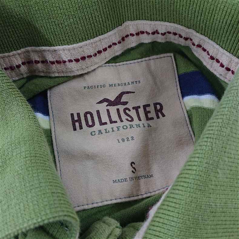 【ホリスター Hollister】ボーダー ポロシャツ 半袖 グリーン系 Sサイズ メンズ