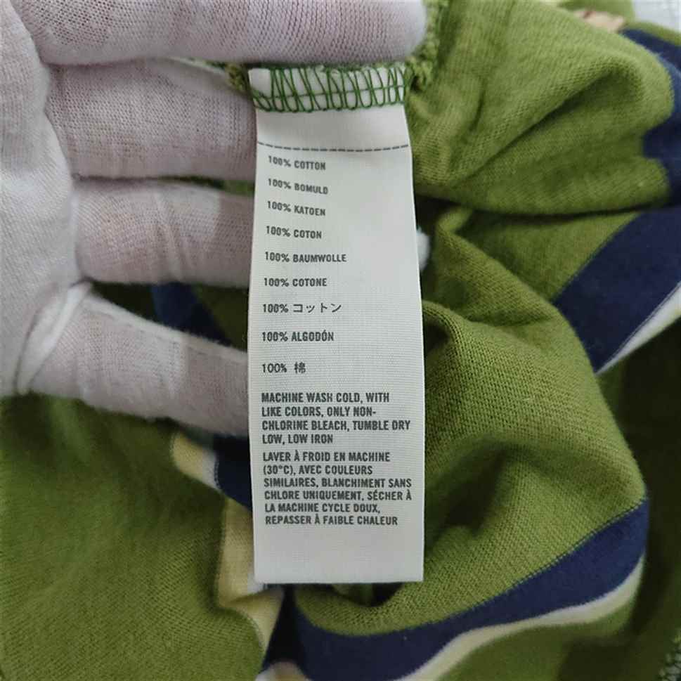 ◇ ⊂ 【ホリスター Hollister】ボーダー ポロシャツ 半袖 グリーン系 Sサイズ メンズ E
