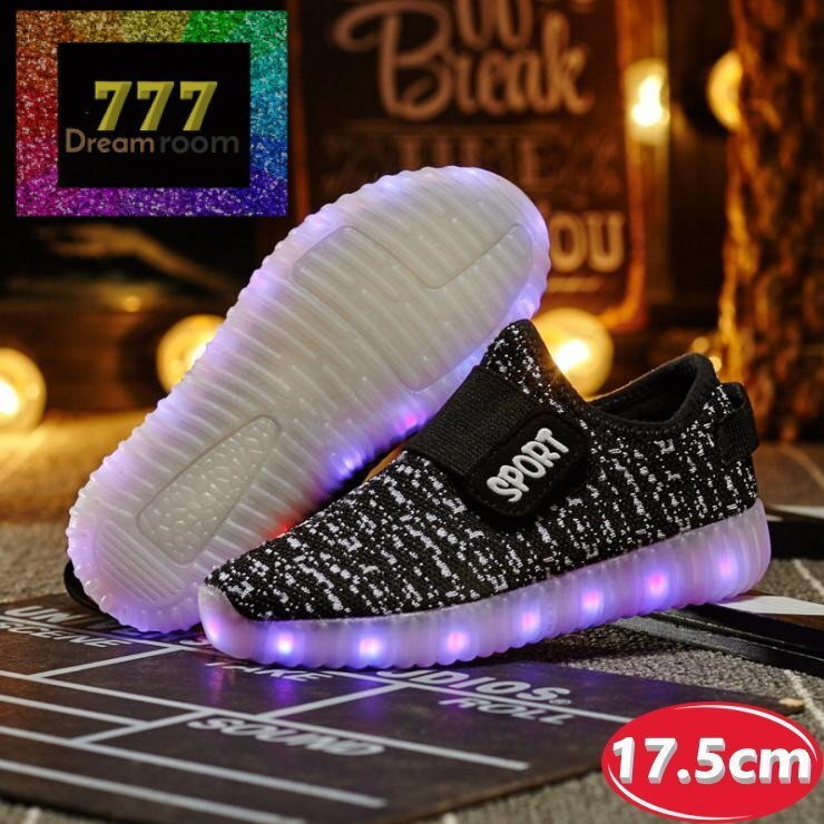 kids 7色に光る☆LED ライトアップ MIXツイードスニーカー 【ブラック 17.5cm】 韓国子供服 キッズ シューズ 子供用 男女