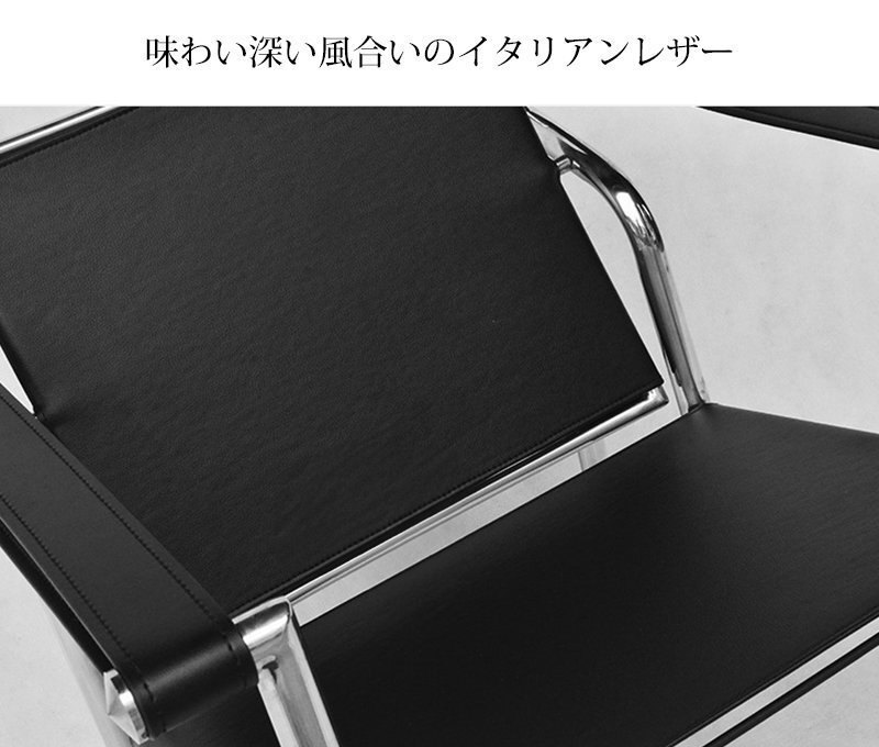 ![]() ル・コルビュジエと彼の従兄弟であるピエール・ジャンヌレとシャルロット・ペリアンが 共同でデザインしたスリングチェア、またはバスキュランチェアは、20世紀に作られた 椅子の中でもマスターピースと称される名品です。この椅子は機能性を追求し、 装飾を排したル・コルビュジエの「住宅は住むための機械である」 という言葉にふさわしいデザインです。 自由に動く背を持つ椅子 LC1 バスキュラントチェア (スリングチェア) コンパクトでシンプルなデザインでありながら、リクライニング機能があり どんな姿勢でも背にかかる負担をしっかりと支え分散してくれます。 背もたれの角度が変わるので、フィットして快適に座ることができます。 アジャスター付き 脚にはアジャスターがついており高さを調節してガタツキをなくします。 プラスチック製の底部なので床を傷つけません。 ■商品詳細 デザイナー:ル・コルビジェ/ Le Corbusier サイズ(約):幅62cm*奥行き61cm*高さ65cm 座面高39cm*座面幅50cm*座面奥行き39cm 重量(約):6kg 材質:本革 脚部分:ステンレス ※簡単な組み立てが必要になります。 ※この商品はリプロダクト品になります。Cassina社の商品ではありません。 |