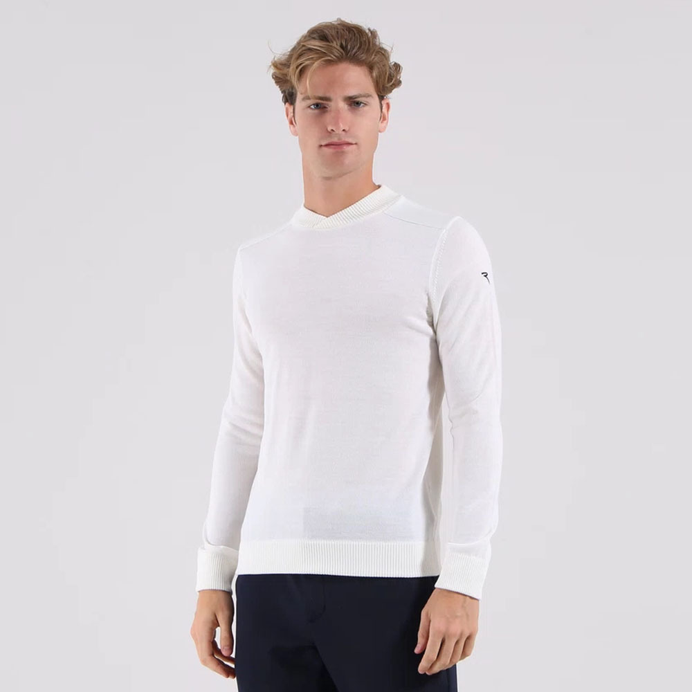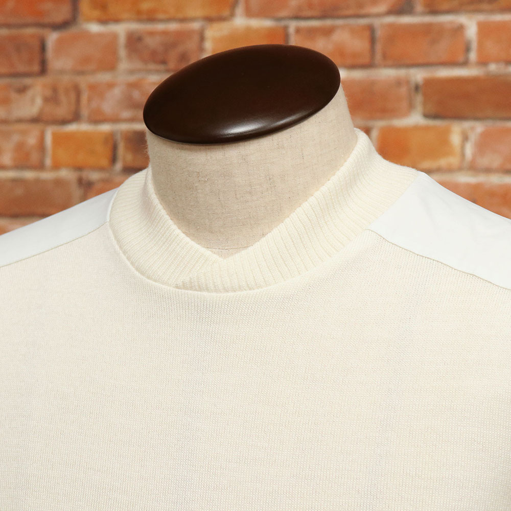 柔らかく暖かなメリノウールを使用したニット。肩部分にあしらわれたナイロン素材の切替がポイントです。異素材使いが立体感を生み出し、上品さの中にスポーティな印象をプラスしています。