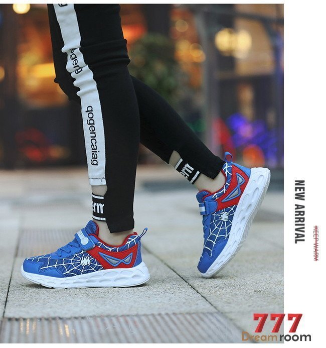 メッシュ素材 スパイダー デザインスニーカー 【ブルー 24cm】 韓国子供服 キッズ シューズ 子供用 男女