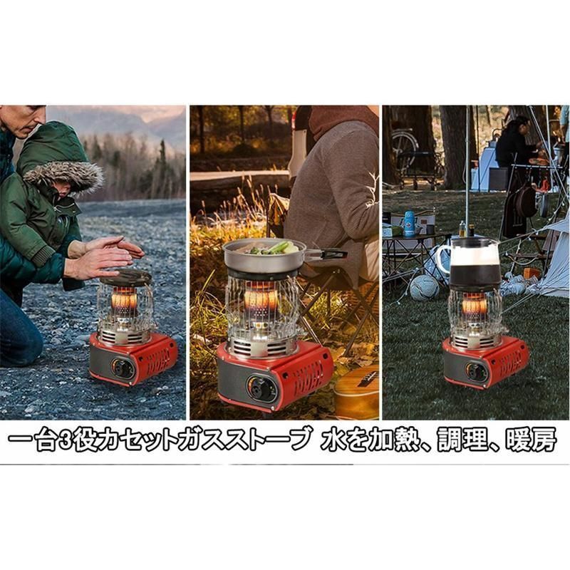 【一台3役】水を加熱、調理、暖房する3つの方法を自由に切り替えることができます、冬のアウトドアアドベンチャーでは、暖かさが非常に重要です。3 in 1小型 ガスボンベ ストーブ は、体を暖かく保つだけでなく、調理、水を加熱、を速くすることもできます!キャンプ・レジャーなどはもちろん、災害時などの暖房グッズとして!電池不要設計で、緊急時にも安心!