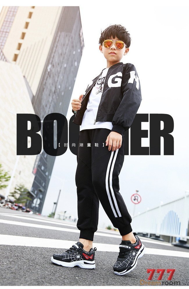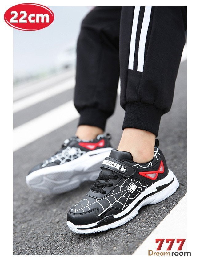 スムース素材 スパイダー デザインスニーカー 【ブラック 22cm】 韓国子供服 キッズ シューズ 子供用 男女