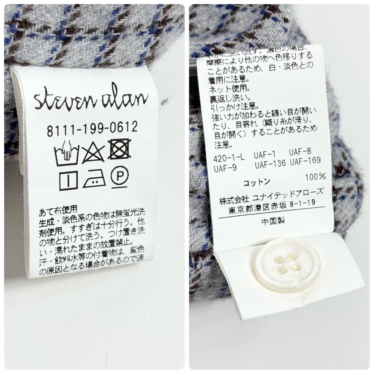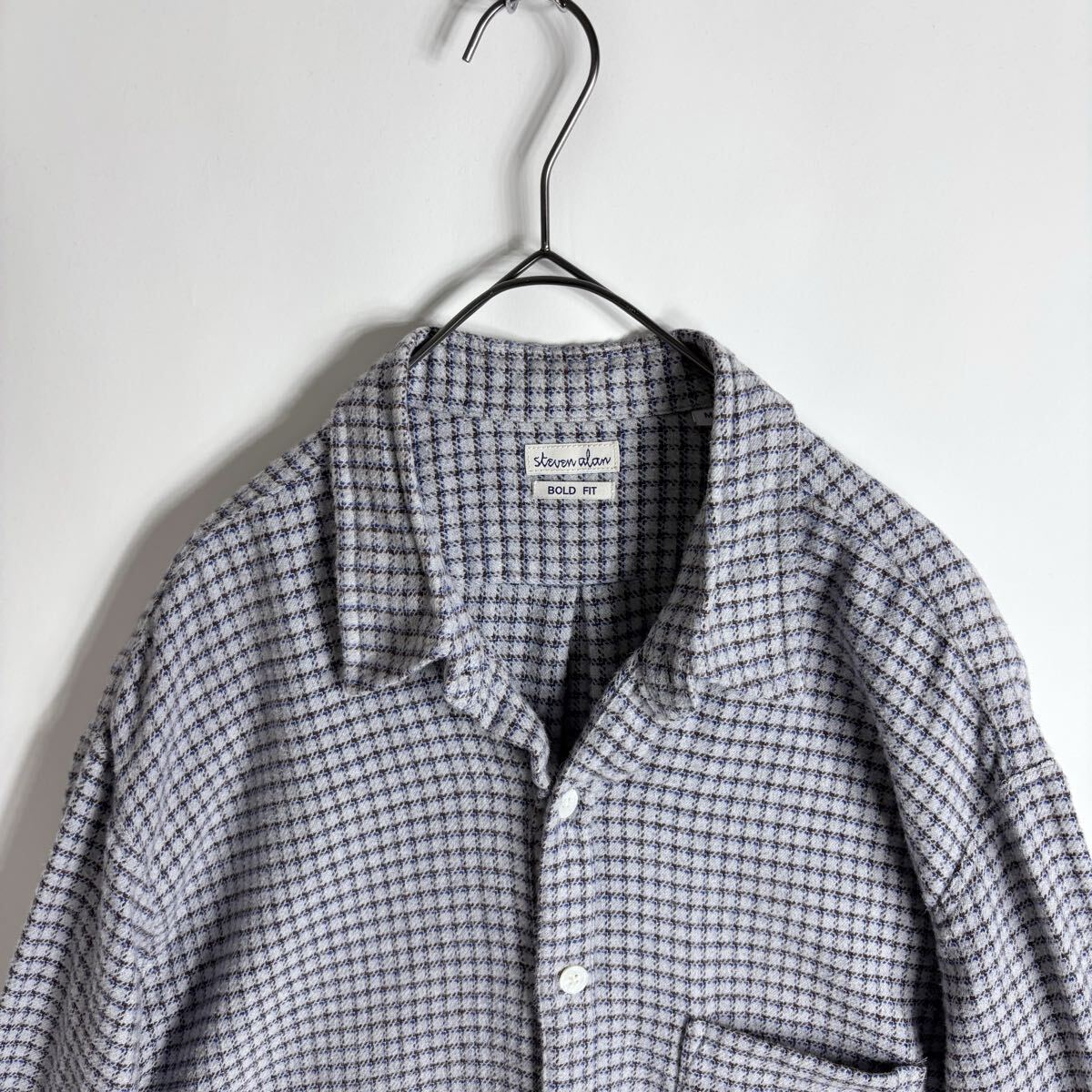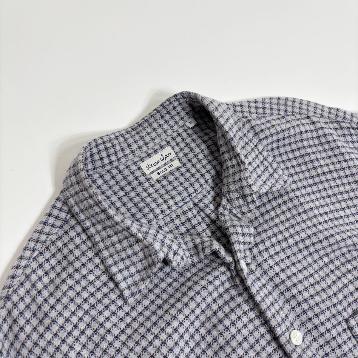 steven alan スティーブンアラン コットンネル リバースシーム チェック シャツ BOLD FIT 起毛素材 ネルシャツ グレー系 size M