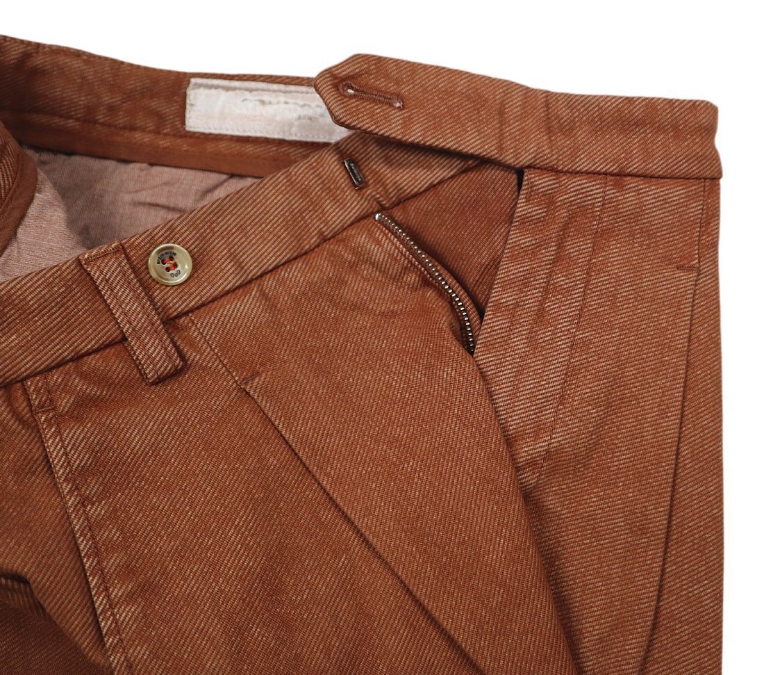 こちらは ”ナポリの伝統的なサルトリア製法をモダンに表現” したライン、『 O'mast / オーマスト 』のプリーツストレッチチノです。参考までに「O'mast」とは、ナポリの方言で「親方」という意味。会社の経営者や多くの部下を持つエグゼ向きのモデルです。