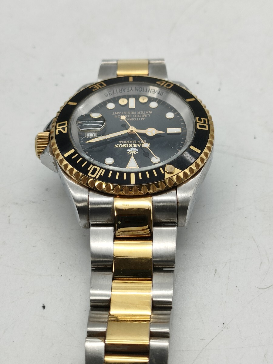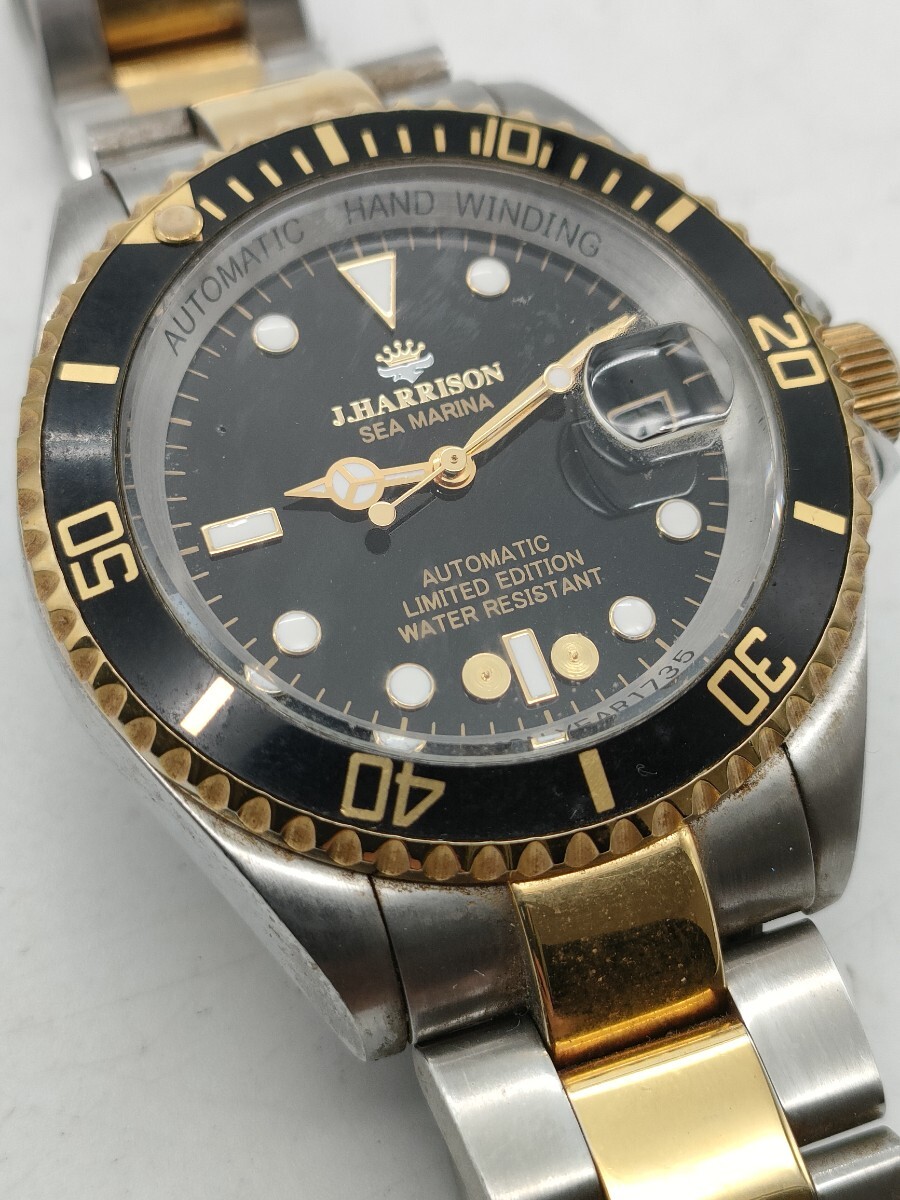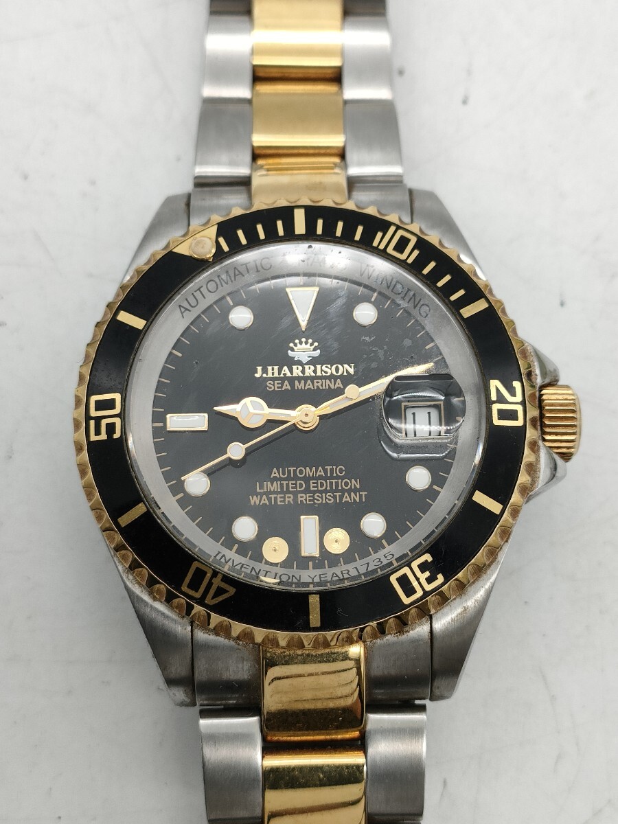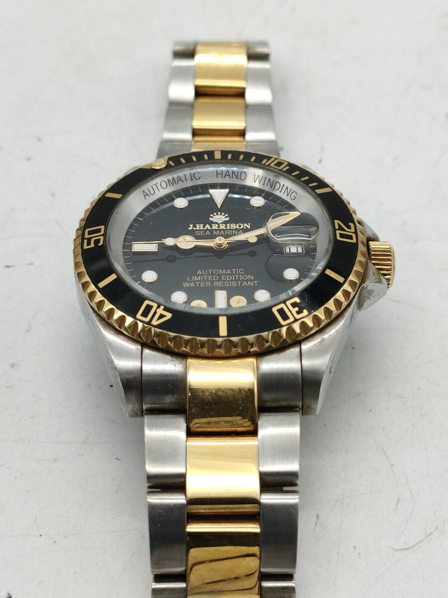 1円〜 J.HARRISON ジョンハリソン J.H-010 SEA MARINA メンズ 腕時計 自動巻き デイト カレンダー コンビカラー 黒文字盤 現状品