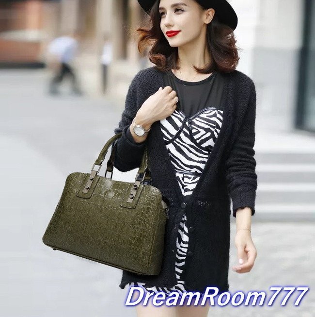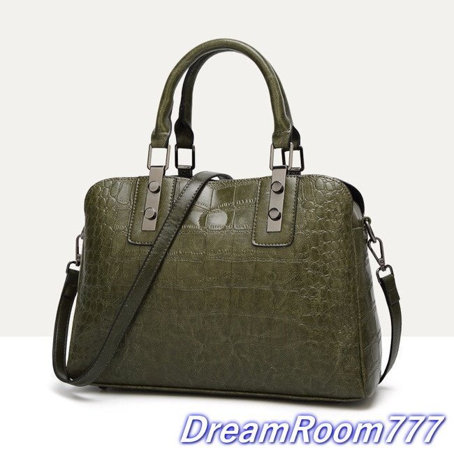classic クロコ 型押し レザーボストン BAG 【カーキ グリーン】ハンドバッグ ショルダーバッグ 海外セレブ K-063-2