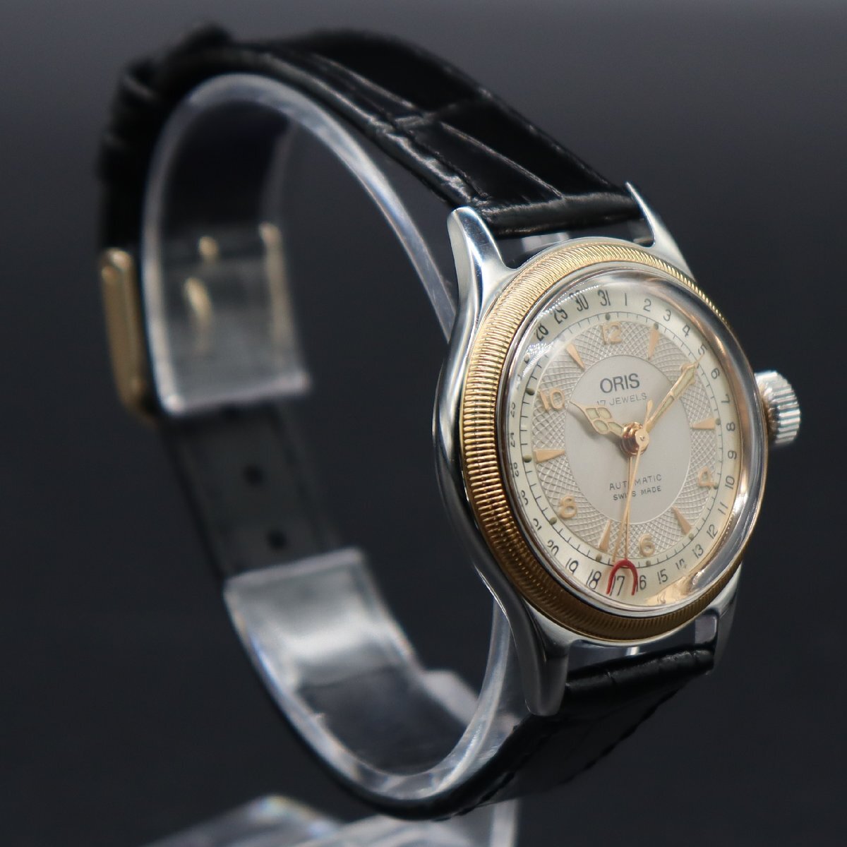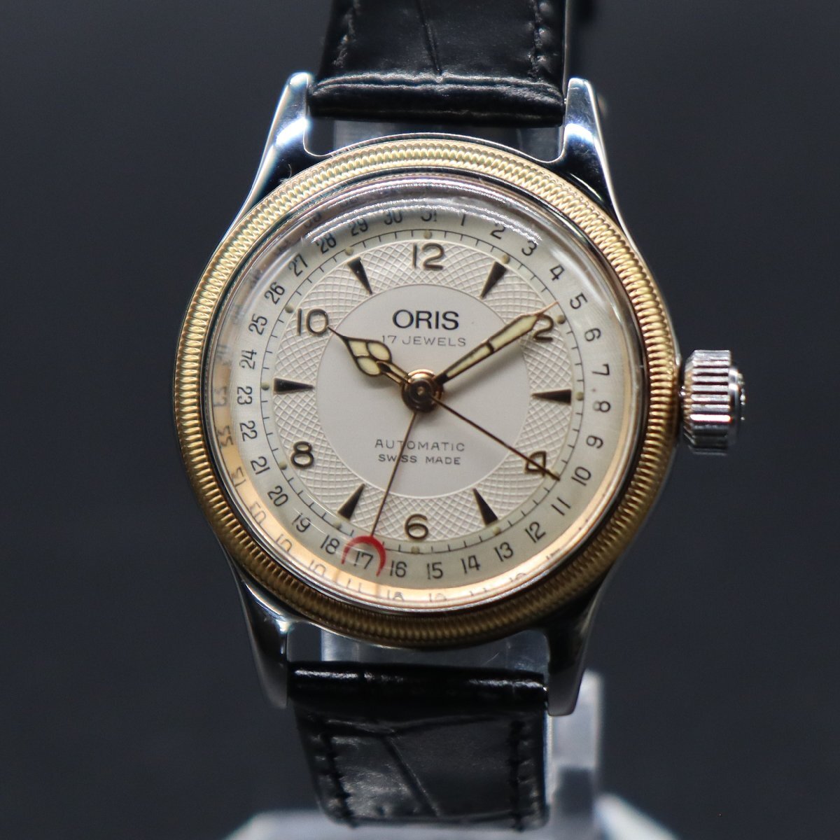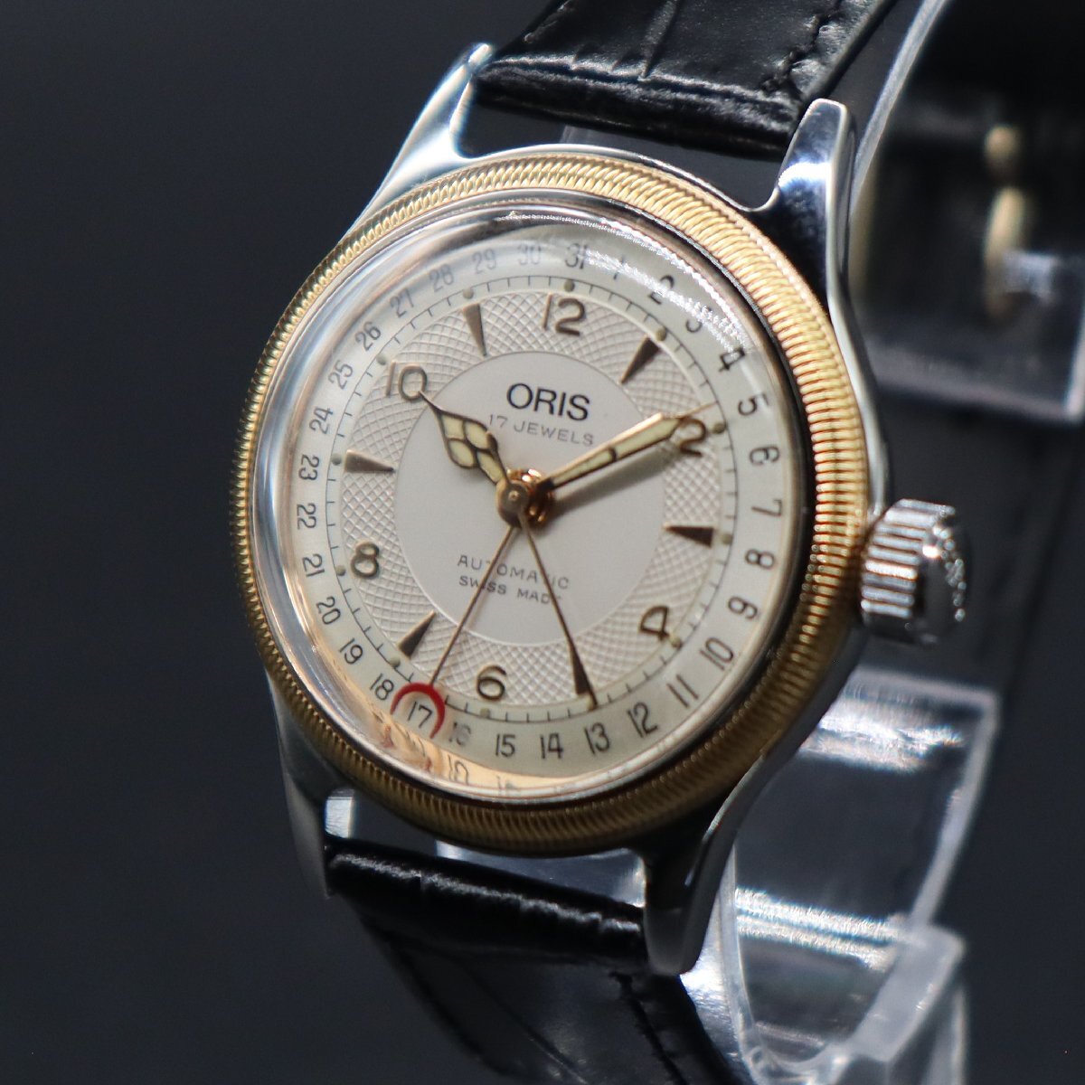 令和7年11月、当店専属の時計修理店/一級時計修理技能士にてOH済です。 OH後、平置きで24時間動作確認済み、+30秒以内で稼働中です。 次回メンテナンス時期まで安心してお使い頂けるかと思います。 リューズ一段引きでデイト針が回り日付け早送り、 二段引きで時刻調整が可能です。 ※カレンダー早送り機能は、商品同封の使用上の注意を必ず守り、 丁寧に、やさしく操作していただくようお願いいたします。 全体に使用に伴う細かなキズ、風防に小キズや小傷みが 見受けられますが、目視では目立たず、視認性は良好です。 夜光に経年劣化ございますが、文字盤や針・インデックスは 経年の割りにきれいな状態です。 プリントロゴや印字は消えなく良好です。 リューズ、ORISロゴ付き純正品です。 裏蓋スケルトン、線キズやフチに小カケございますが、 内部しっかり確認できます。 ベルトは、新品の国内メーカー製革ベルトに交換済みです。 状態について、詳しくは画像にてご判断願います。 |