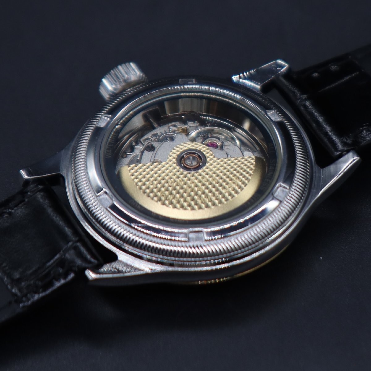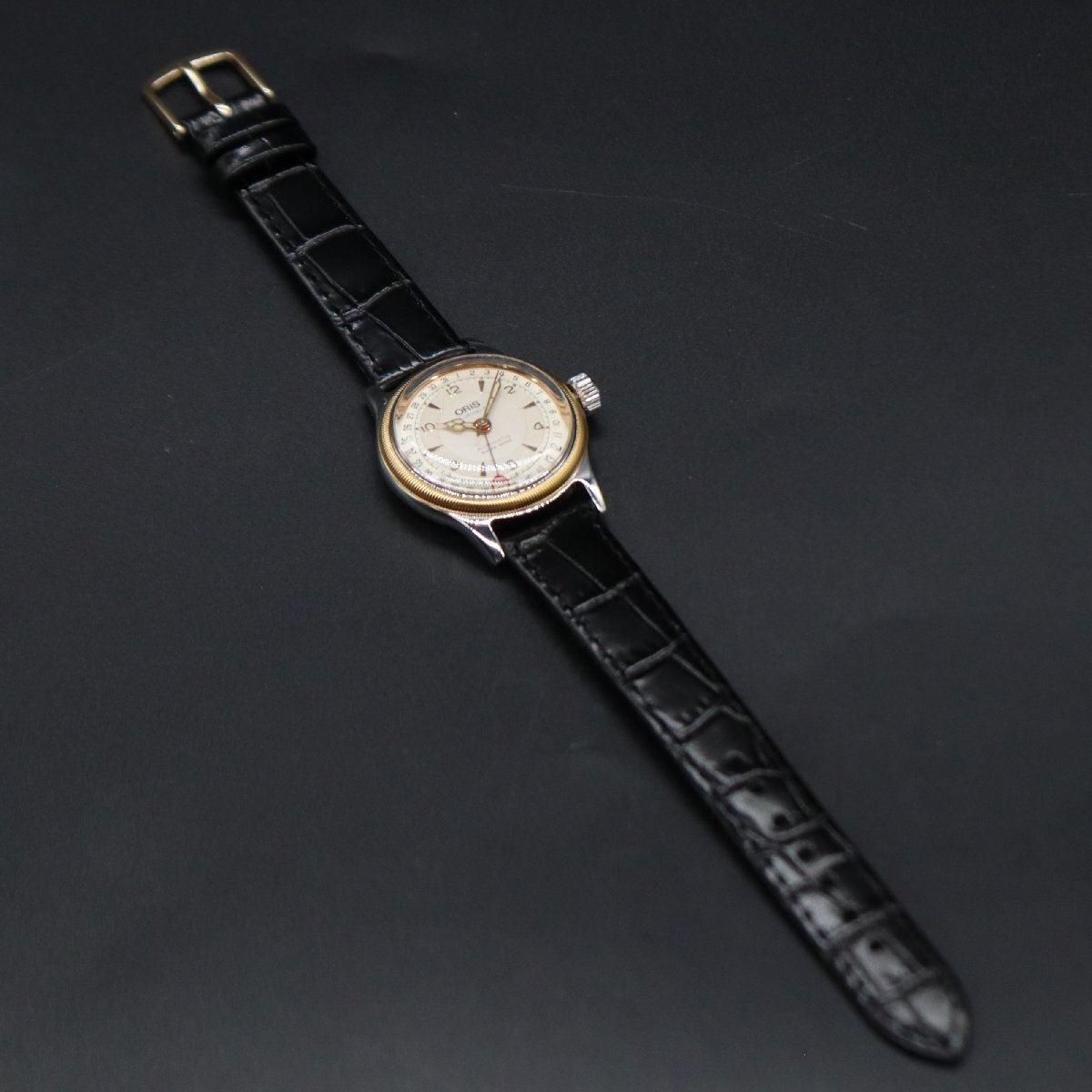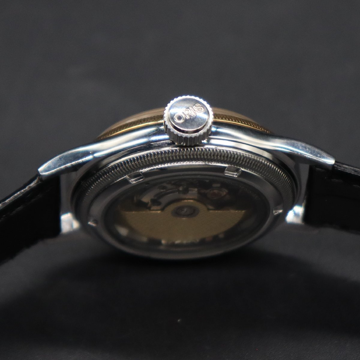 令和7年11月、当店専属の時計修理店/一級時計修理技能士にてOH済です。 OH後、平置きで24時間動作確認済み、+30秒以内で稼働中です。 次回メンテナンス時期まで安心してお使い頂けるかと思います。 リューズ一段引きでデイト針が回り日付け早送り、 二段引きで時刻調整が可能です。 ※カレンダー早送り機能は、商品同封の使用上の注意を必ず守り、 丁寧に、やさしく操作していただくようお願いいたします。 全体に使用に伴う細かなキズ、風防に小キズや小傷みが 見受けられますが、目視では目立たず、視認性は良好です。 夜光に経年劣化ございますが、文字盤や針・インデックスは 経年の割りにきれいな状態です。 プリントロゴや印字は消えなく良好です。 リューズ、ORISロゴ付き純正品です。 裏蓋スケルトン、線キズやフチに小カケございますが、 内部しっかり確認できます。 ベルトは、新品の国内メーカー製革ベルトに交換済みです。 状態について、詳しくは画像にてご判断願います。 |