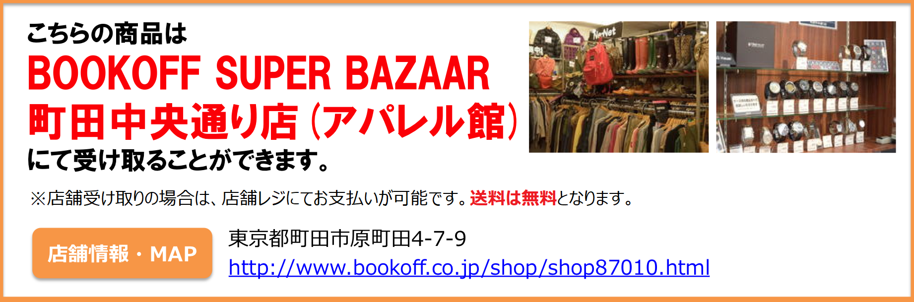 | 画像はスマートフォンによる撮影のため、実際の色と若干異なる場合がございます。お使いのPC環境やスマートフォン端末などにより実際の色味と異なる場合もございます。ご不明な点はご入札前に「出品者への質問」からお問い合わせください。お電話で店舗受け取り対象の店舗にお問い合わせいただいてもお答えできません。予めご了承ください。こちらのお品物はレターパックプラスにて発送となります。予めご了承下さい。 | ||||||