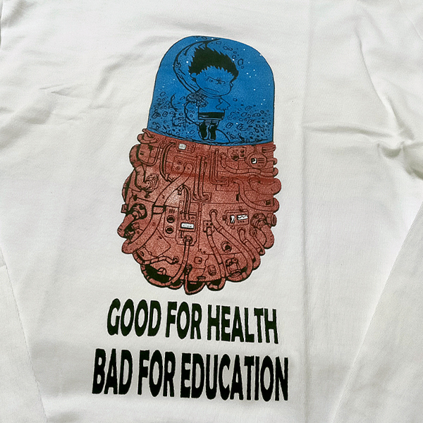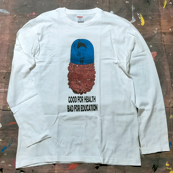 送料無料/ロンT【Good For Health Bad for Education】 PEANUTS風/ ホワイト★選べる3サイズ/M L XLサイズ/ヘビーウェイト 5.6オンス