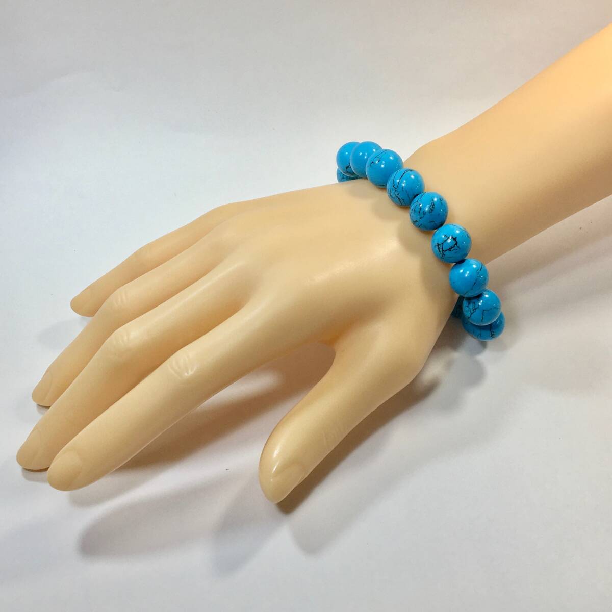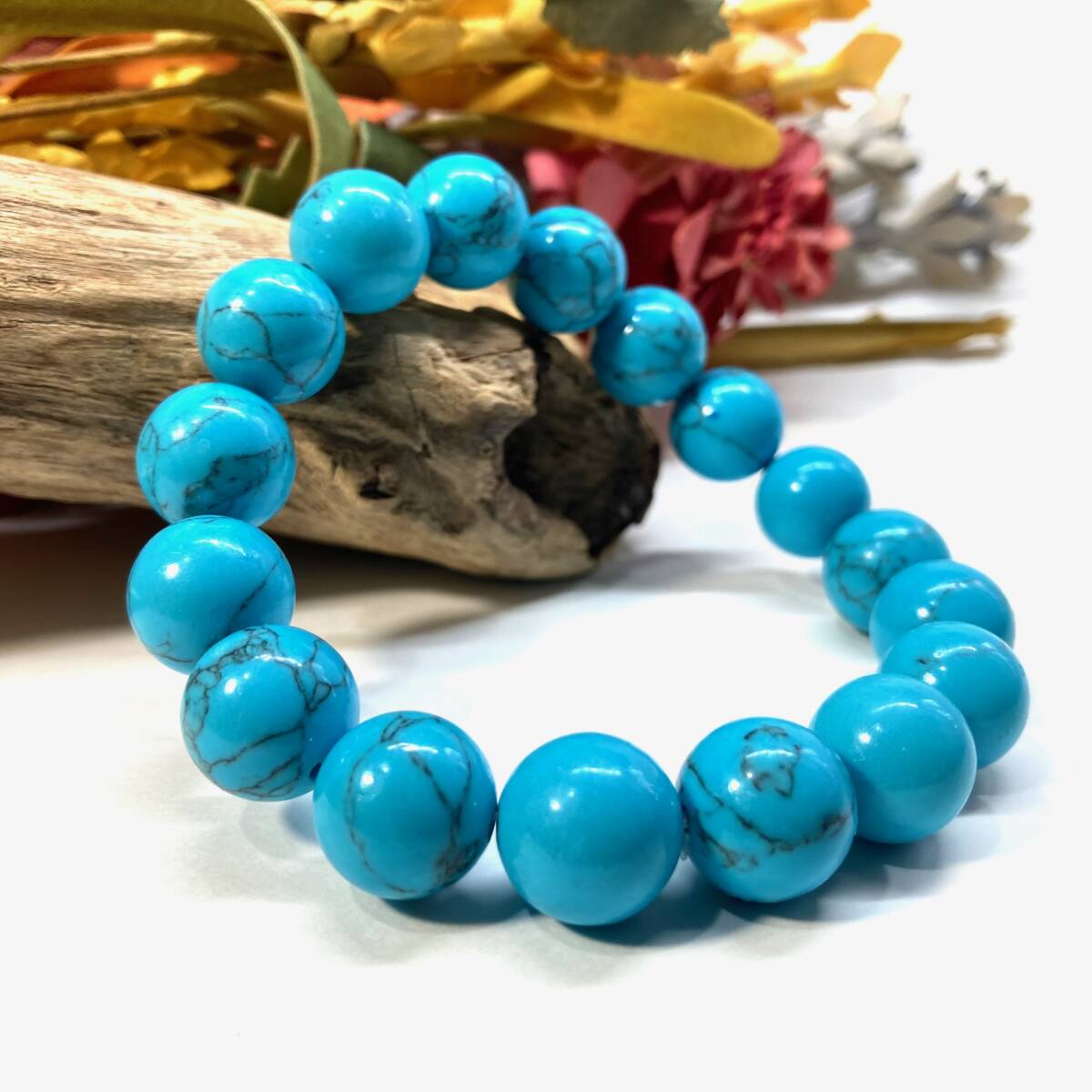 こちらは、ターコイズの12mm玉を使用したパワーストーンブレスレットです。シンプルなデザインですのでどんなコーディネートとも合わせ易いブレスレットです。程よくインパクトがある12mm玉を使用して内径約17cmです。(サイズ変更の場合は取引ナビにてご連絡をお願いします。) 数に限りがございますので気になる方はお早めにどうぞ。